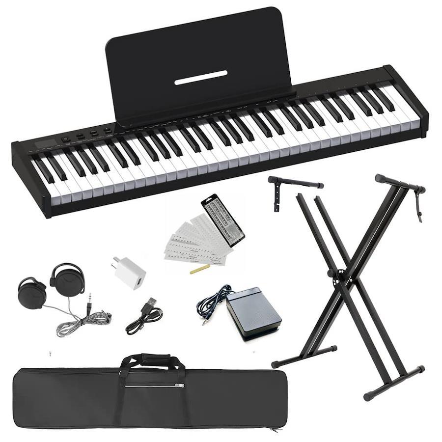 3000円クーポン応援!15900円で入手可能!】【高品質専用スタンド付きで超お得セット】置台の悩みがなし、一個買えばピアノとスタンドを手に入れます。【コンパクトで移動や納も楽】longeye 61鍵盤電子ピアノは現在世界最も小さいサイズを誇る電子ピアノです。長さはわずか87cmで、重さは約3.6㎏。純粋バッグ付き、外出でもすぐ連れて行け、練習にピッタリです。 【本格的な鍵盤サイズ&指力感知機能付き】白鍵の幅は2.2cm、指力感知機能オンすると、弾く強さで音の強弱もつけられ、生ピアノと同じ弾き心地で練習や初心者に最適な電子ピアノです。10mmストロークの鍵盤も搭載し、アコースティックのタッチに迫る本格的なピアノ演奏が楽しめます。 【日本語表記パネル設計&機能たっぷり】日本語表記パネル設計で同類品の英語表記と比べ、一目瞭然で機能が分かりやすいです。128種類音色、128種類リズムパターン、20デモ曲内蔵、サスティン、ビブラート、和音も対応可能!更に、知能ピアノサウンド処理チップが採用、最新の高音質スピーカー二つが商品の両側にも設置され、音の広がりと豊な音場を味わうことができます。 【フランスのDREAM最新音源採用&二つスピーカー搭載&MIDI機能対応可】フランスのDREAM音源を採用して、リアルなピアノ音のバランスと艶やかな高音の響きを実現しました。【 MIDI機能対応可】本製品はMIDI対応でiPhone、iPadなどと連動、perfect pianoなどいろんなピアノアプリが楽しめます。 【豊かな付属品,いろんな利用方法】スタンド、譜面台、ペダル、鍵盤シール、収納バッグ、イヤホン、マイク(別売り)、MP3音源などたくさんの設備と接続でき、利用方法は豊富!詳細な日本語説明書(1年間保証書内蔵)も付きます。???【1年保証】ご購入頂いた日から30日以内無条件返品・返金保証、何か不明があったらぜひ連絡してください!
