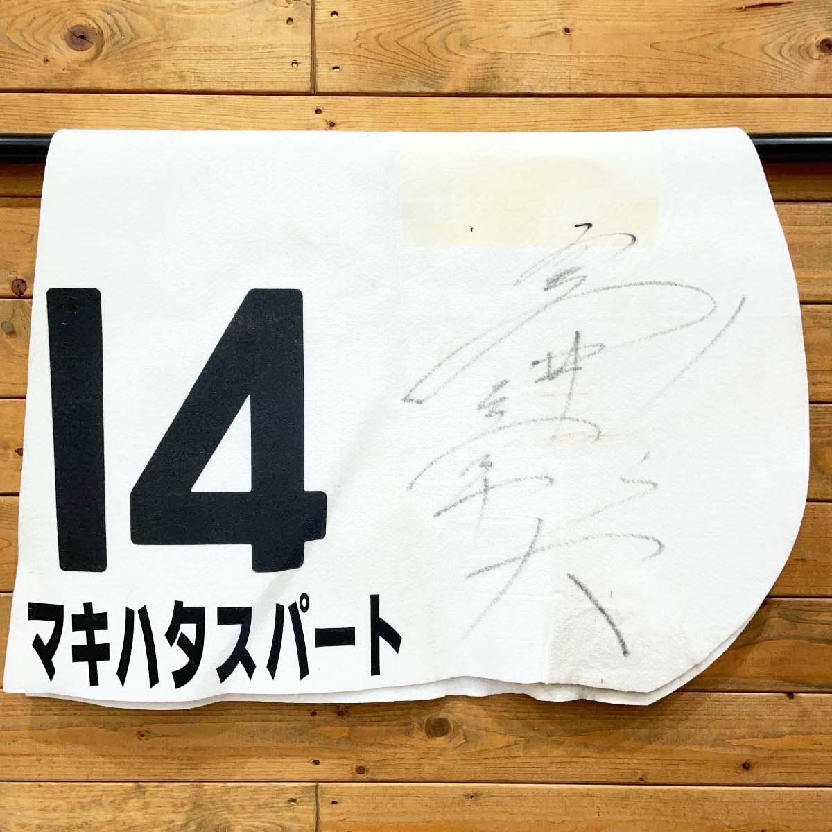[タイプ] マキハタスパート 障害4歳以上未勝利 ゼッケン 高井彰大 直筆サイン入り[状態] 実使用品のため使用感があり、ある程度の汚れや傷みがみられます。