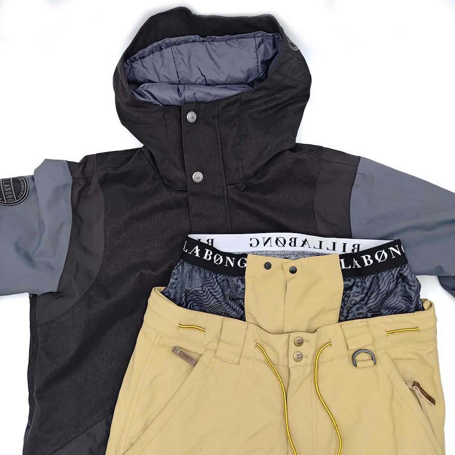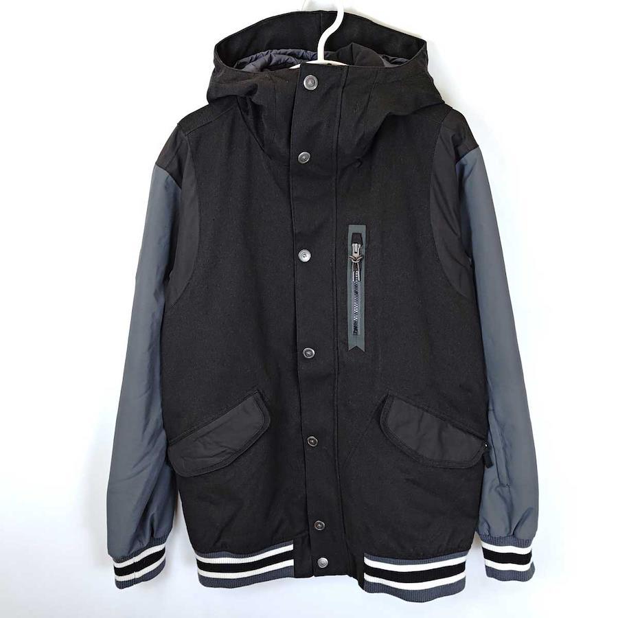 [タイプ] スノーボードウェア VARSITY JACKET ジャケット パンツ[表記サイズ] M[対象] メンズ[カラー] ブラック/グレー/カーキ[身幅] 約60cm[着丈] 約75.5cm[総丈] 約102cm[袖丈] 約68.5cm[肩幅] 約51cm[ウエスト] 約45.5cm[股上] 約31cm[股下] 約76cm[状態] 細かな毛玉や多少の汚れがあり、ジャケットの袖にひっかき傷がみられます。