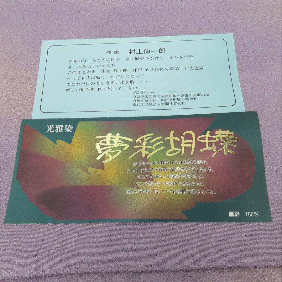 | 品名 | 【中古】 反物 光雅染 夢彩胡蝶 正絹 くすみ藤 パープル系 ぼかし 作家 村上伸一郎 落款あり レディース 女性 |