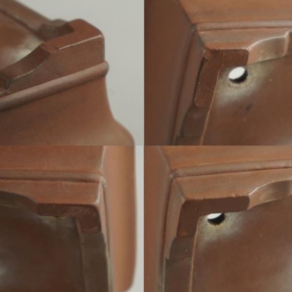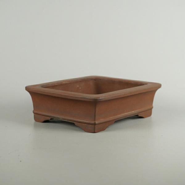 [Used] Bonsai pot, Tokoname ware, Asahisei, small size, longest side approx. 16.3cm, rectangular pot, outer rim, lower band, clay, Japanese style pot, actual item, used pot