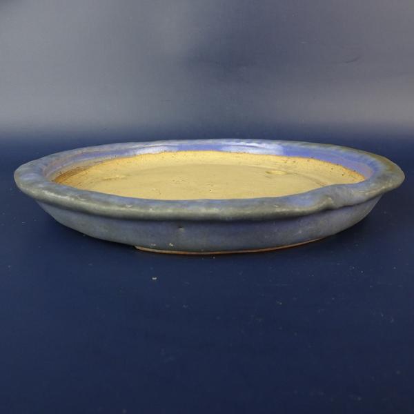 Used Bonsai Pot, Bud, Medium Size, Long Side Approx. 20.5cm, Irregular Shape, Round, Glazed Rim, Actual Condition, Used Pot