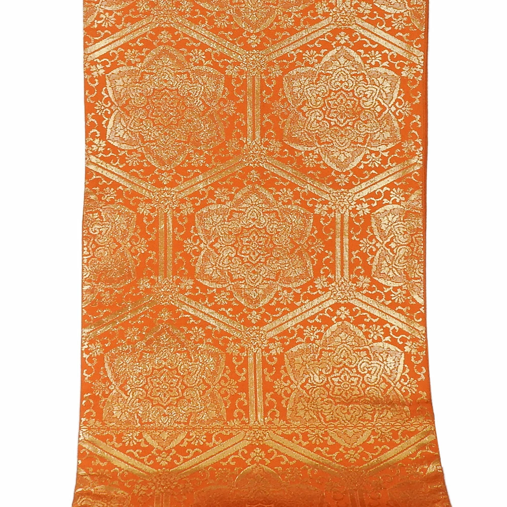 | 品名 | 【中古】袋帯 正倉院文様 オレンジ地 金 ゴールド 振袖用 全通柄 成人式 呉服 着物 |
