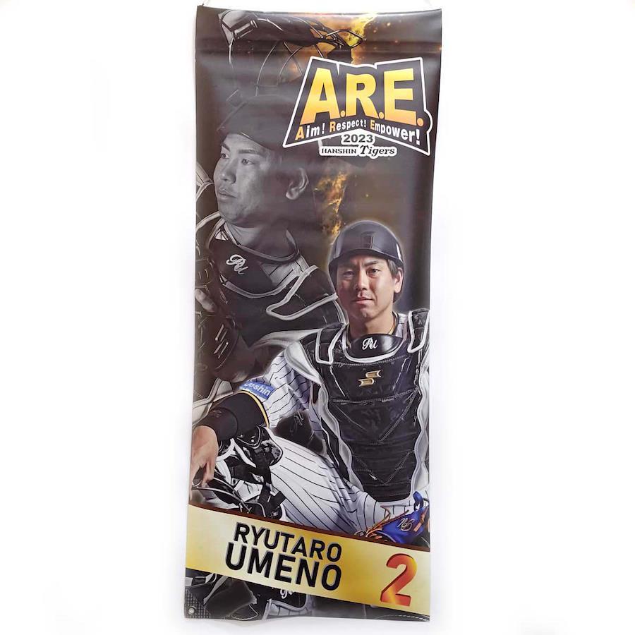 [タイプ] 阪神タイガース 梅野隆太郎 #2 甲子園駅前広場 実使用タペストリー 2023年 直筆サイン入り 非売品[サイズ] 縦約119×横約48cm[状態] 汚れや傷みがあり、画像のように上部の端に少し破れがみられます。