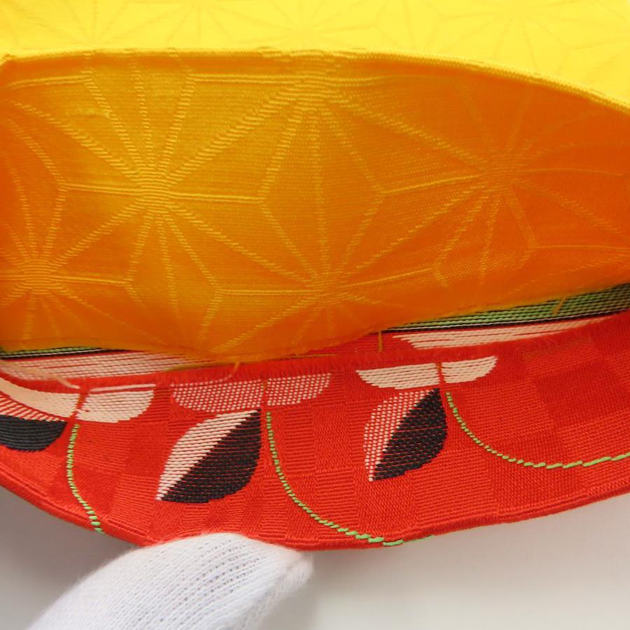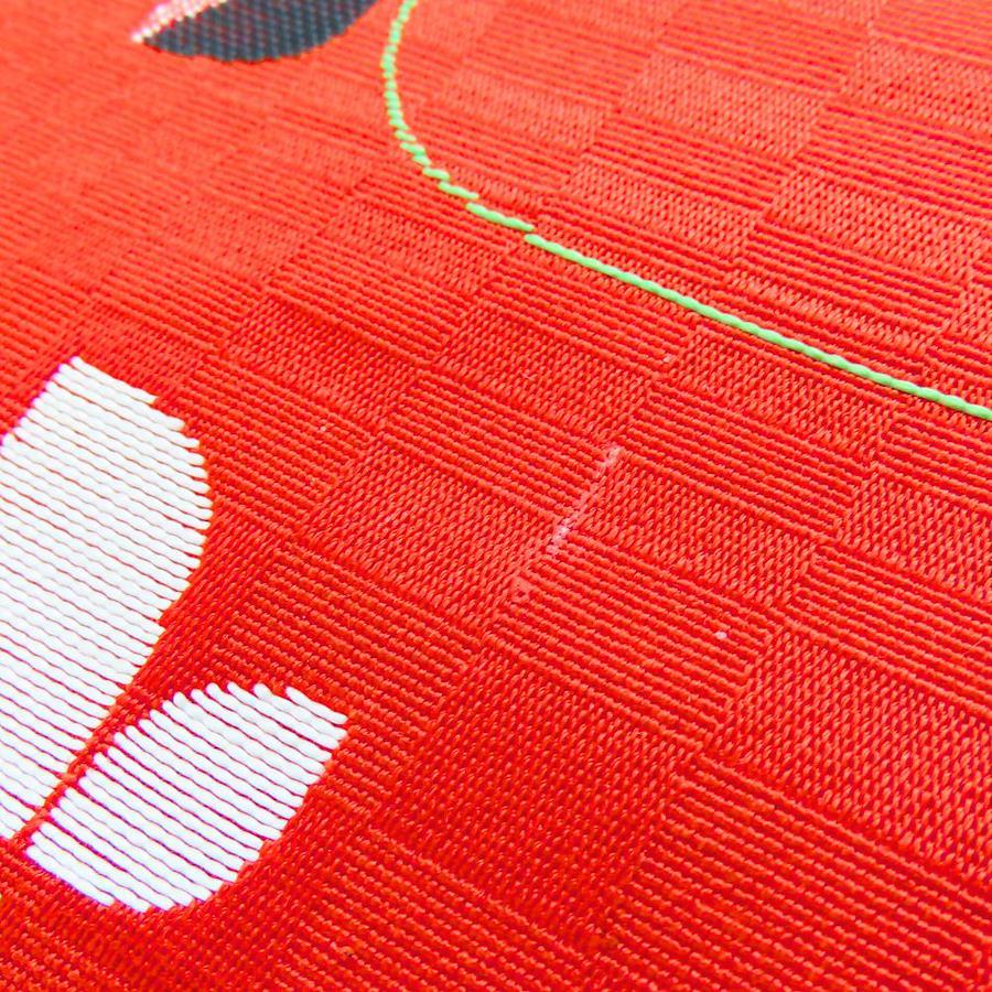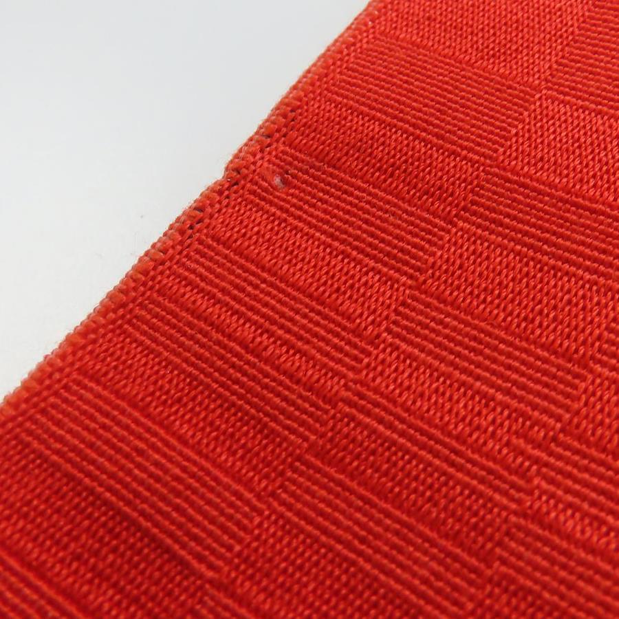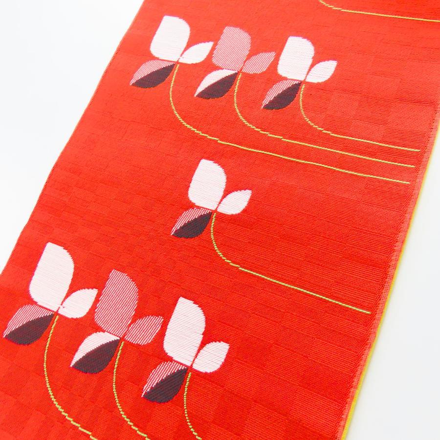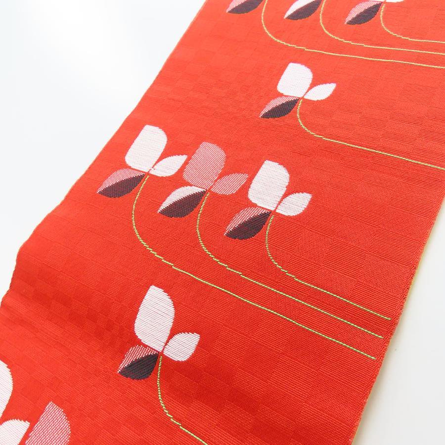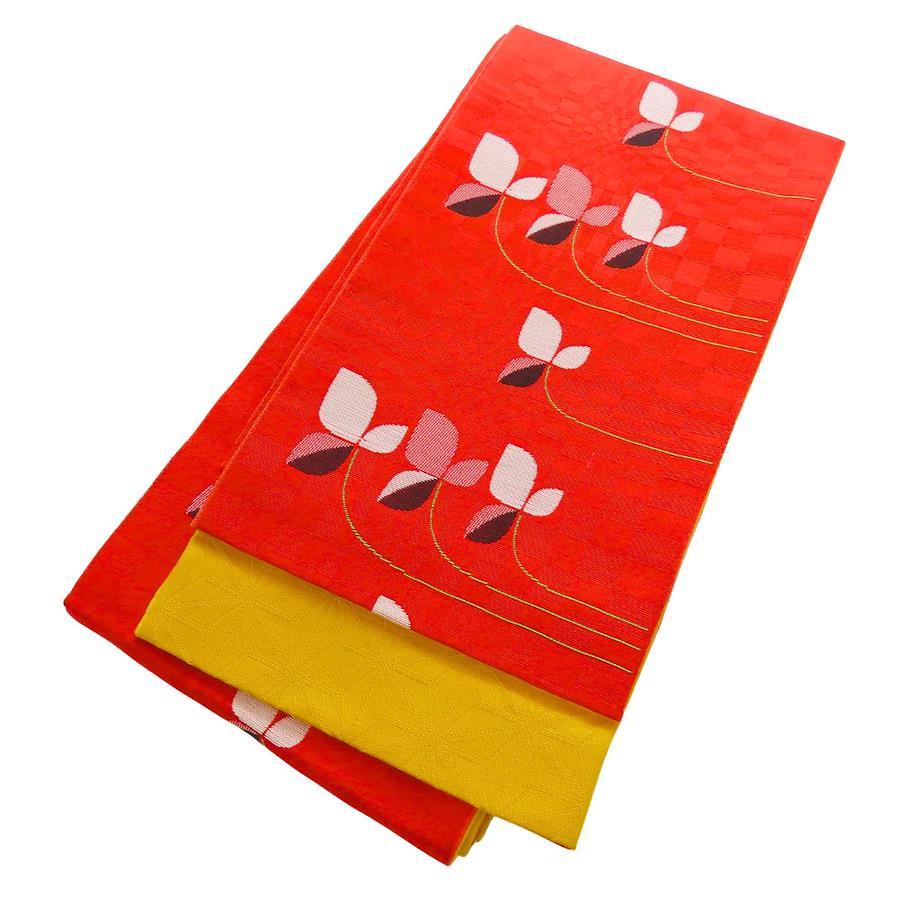 品名【中古】 半幅帯 正絹(金銀糸除く) レッド ホワイト イエロー 三つ葉 麻の葉模様 レディース 女性