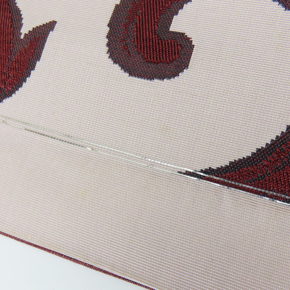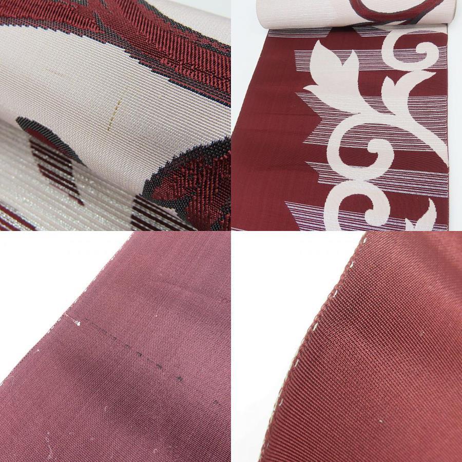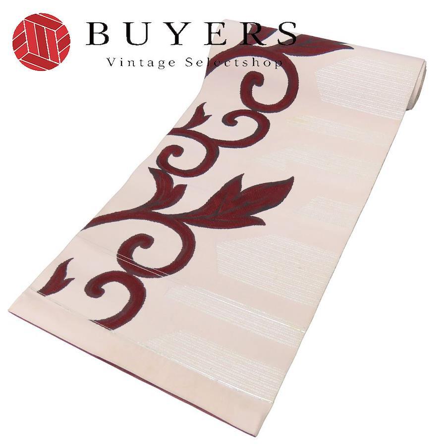 品名【中古】 反物 名古屋帯 正絹(金銀糸除く) ピンクベージュ ブラウン 唐草模様 レディース 女性