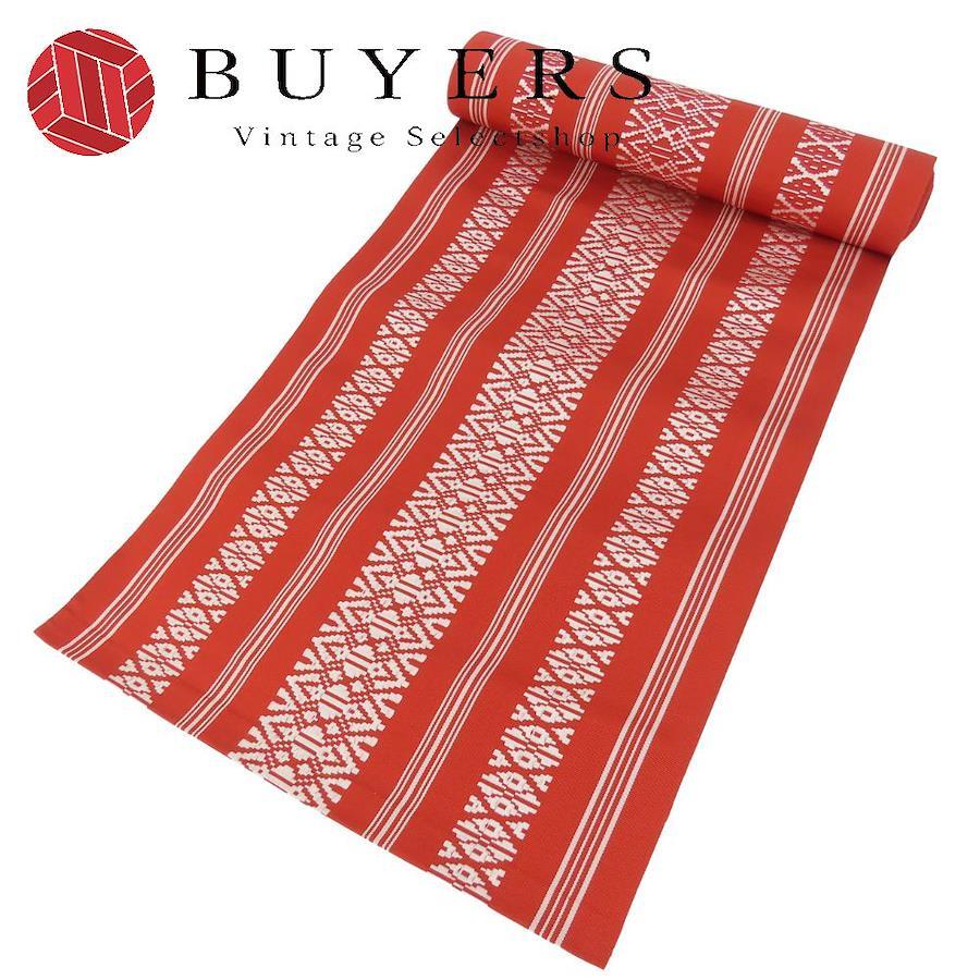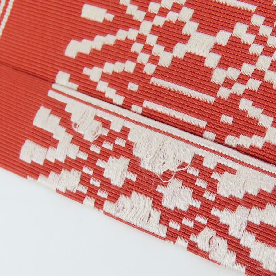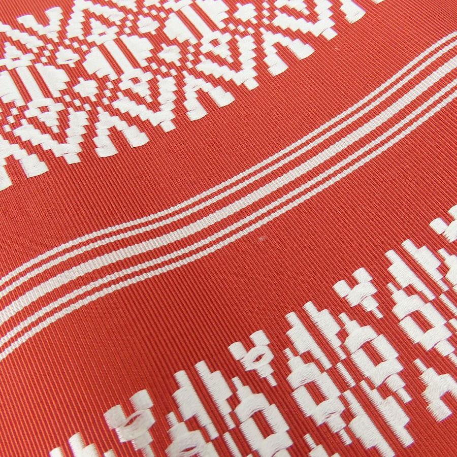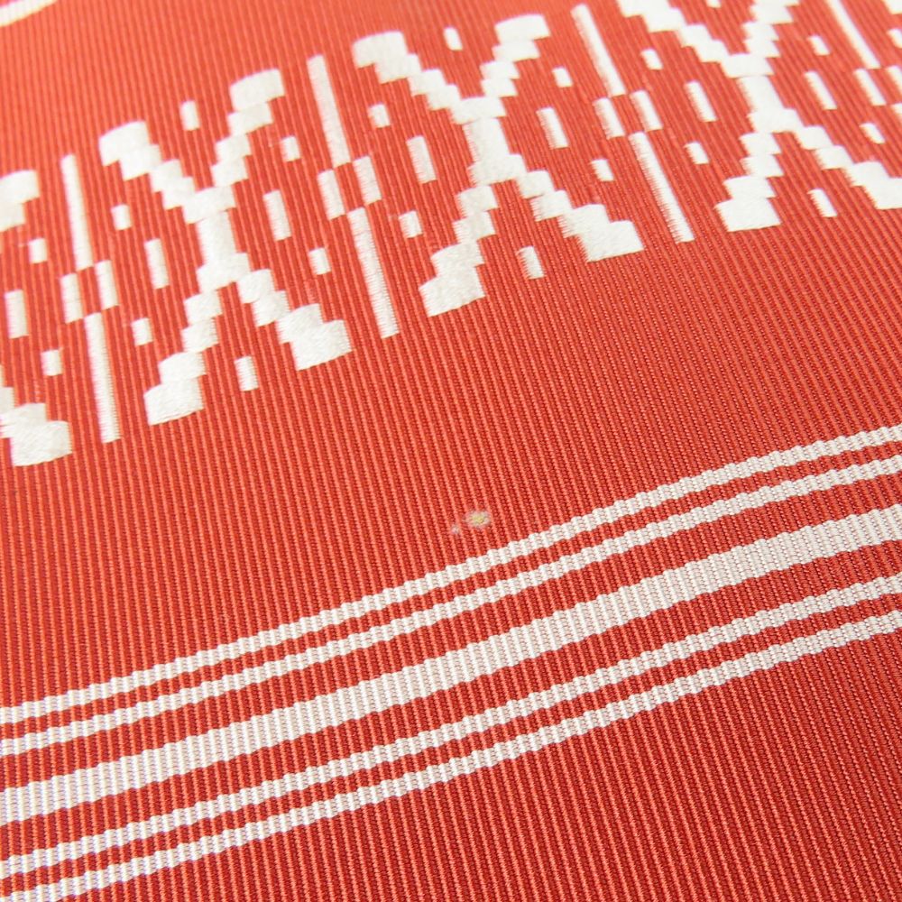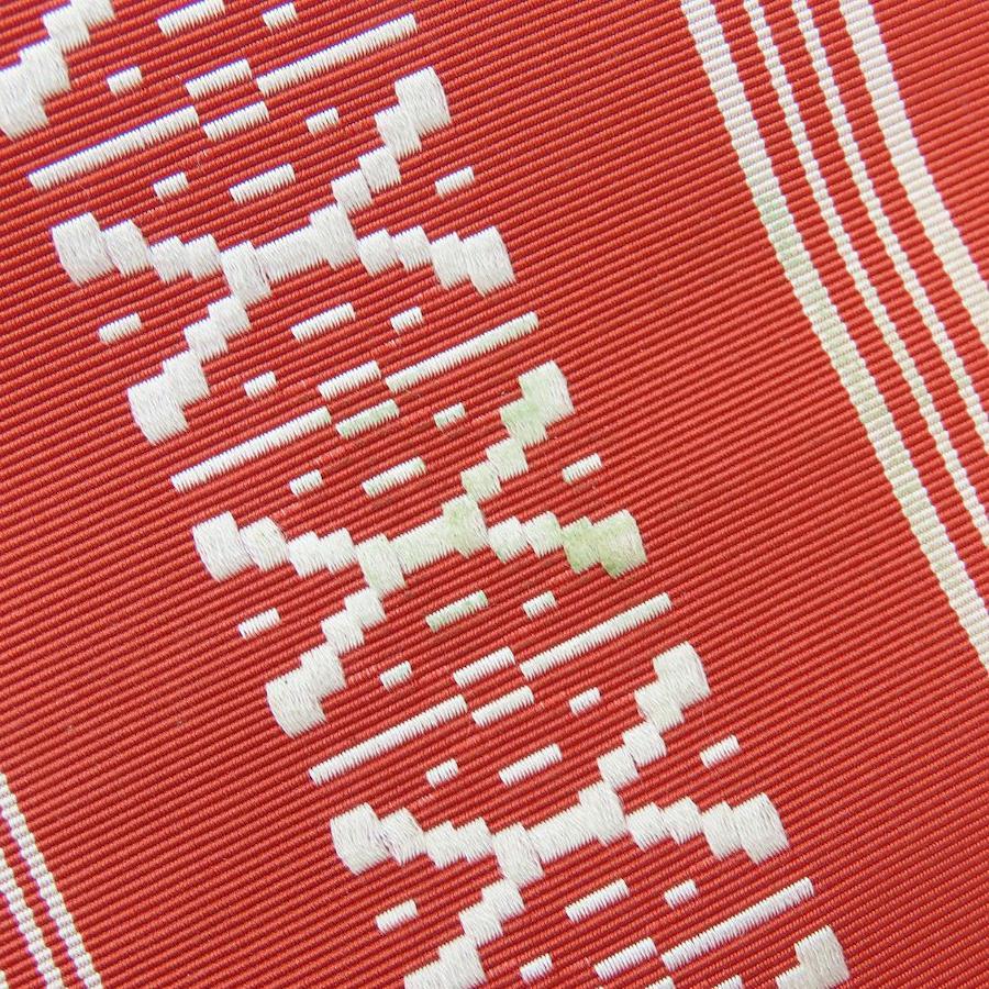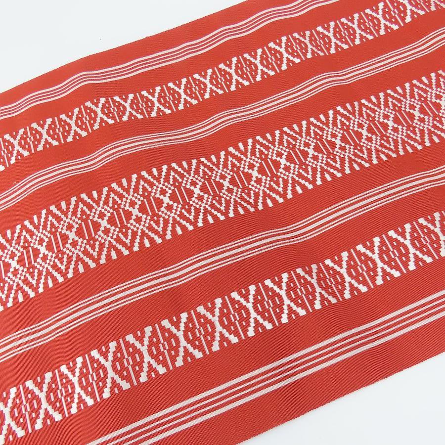 品名【中古】 反物 名古屋帯 正絹 レッド ホワイト 八寸名古屋帯 献上柄 レディース 女性