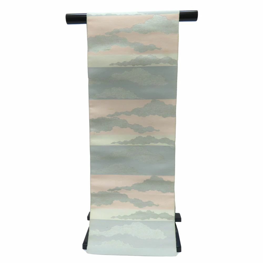| 品名 | 【中古】 反物 正絹(金銀糸除く) グレー シルバー 名古屋帯 八寸 リメイク レディース 女性 |
