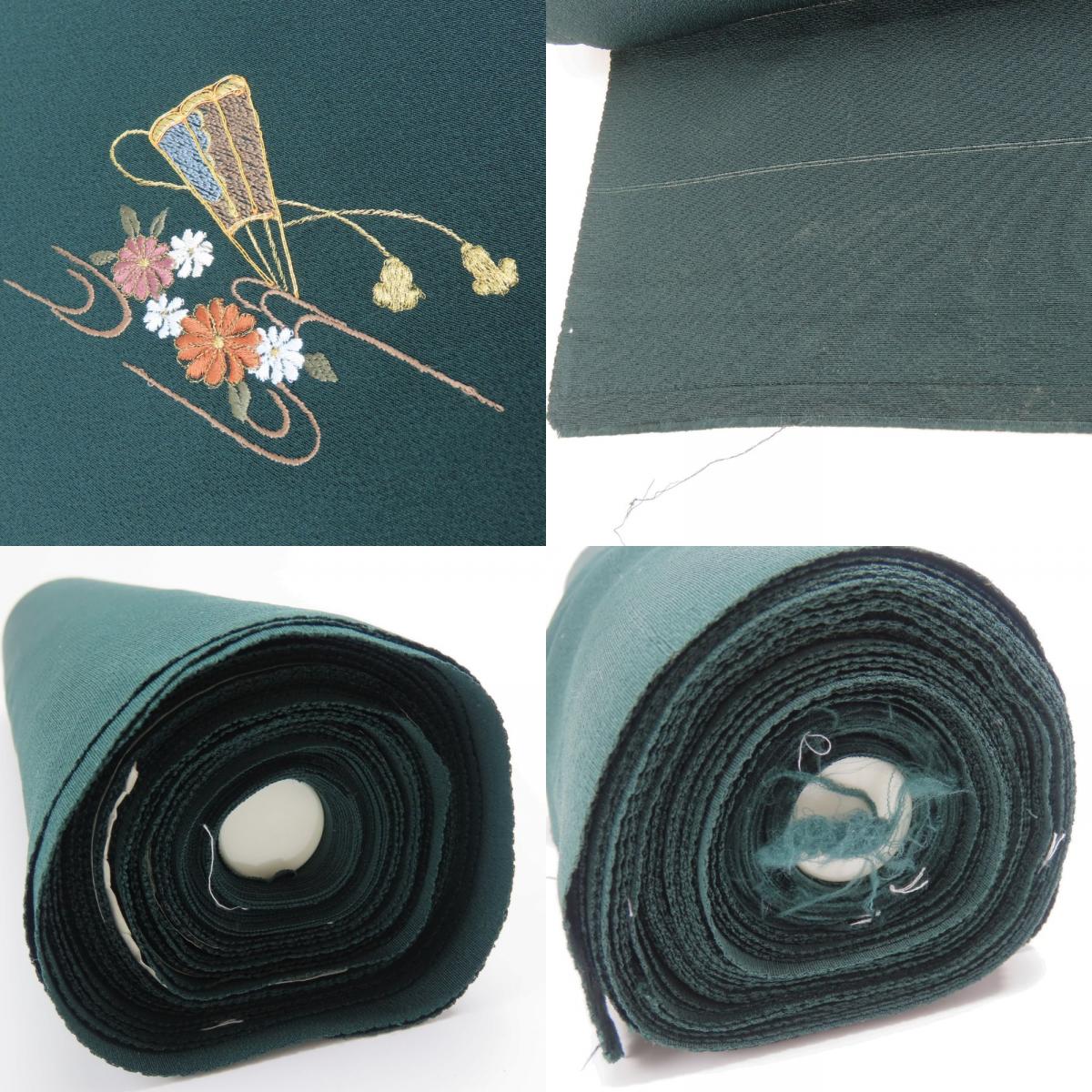 | 品名 | 【中古】 反物 訪問着 ちりめん 正絹 深緑 八掛付き 刺繍 裁断済み レディース 女性 |