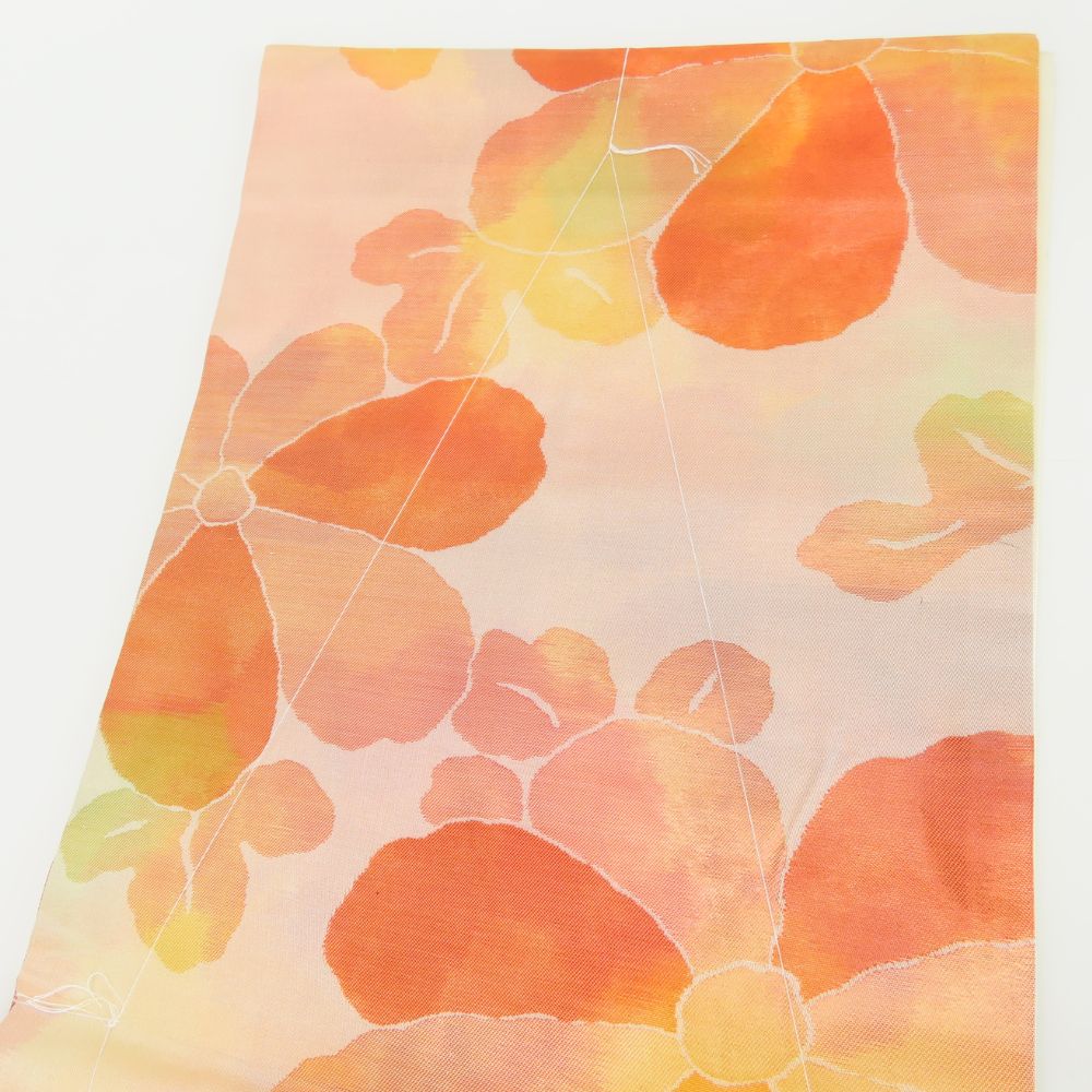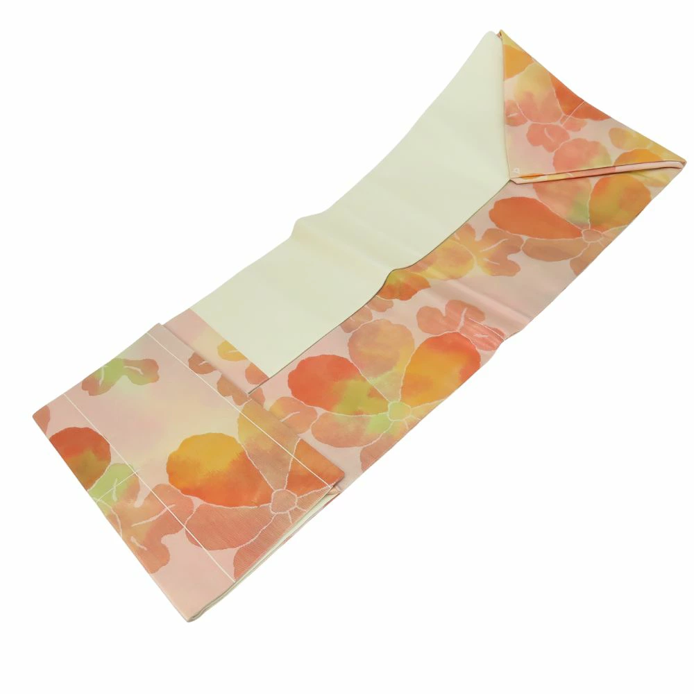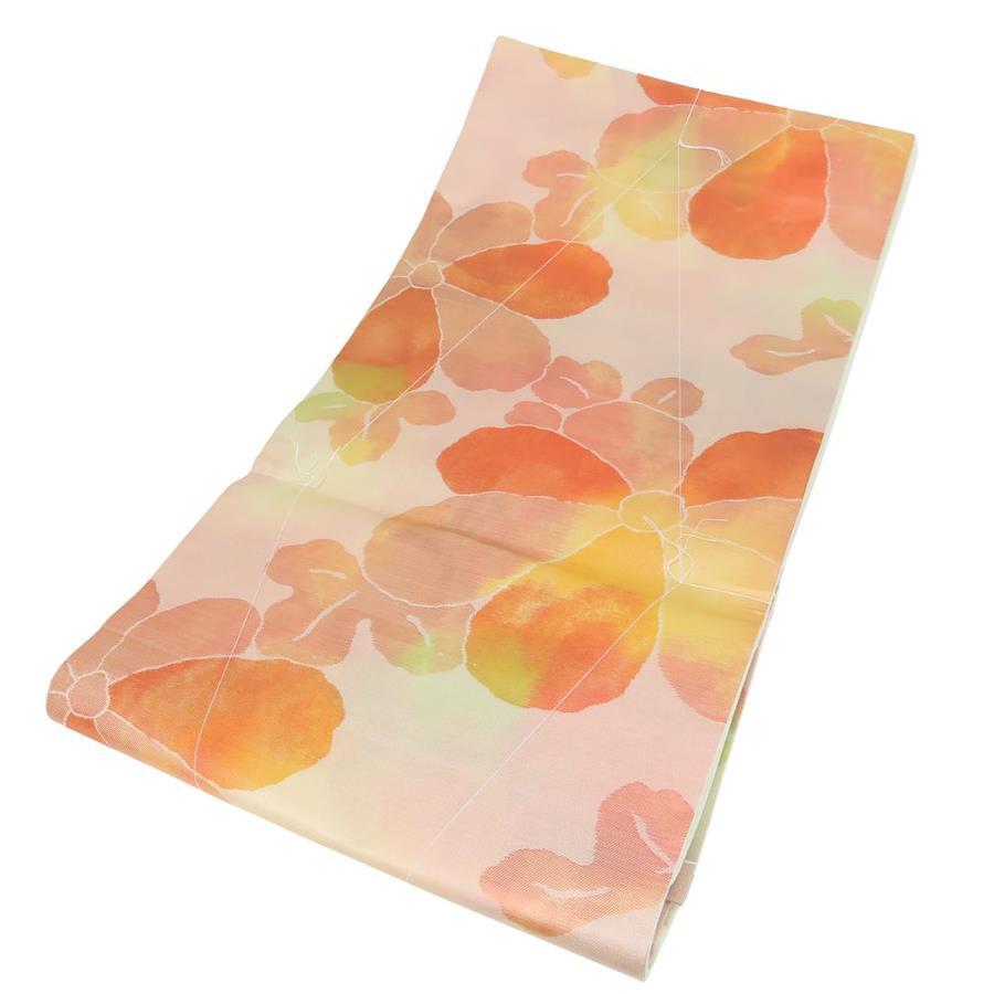 品名【中古】 名古屋帯 しつけ糸あり 九寸 正絹(金銀糸除く) ピンク系 オレンジ系 マルチカラー 名古屋仕立て ぼかし お洒落 レディース 女性