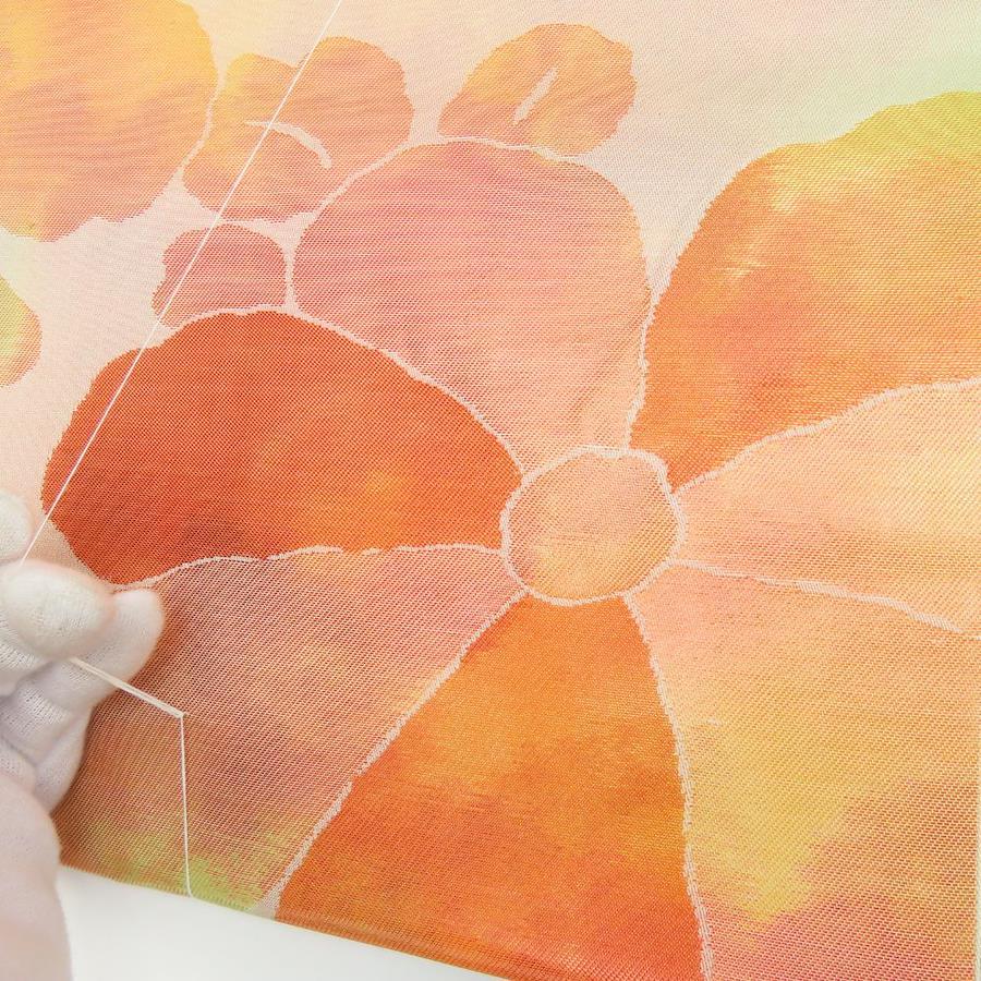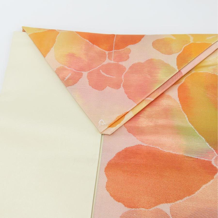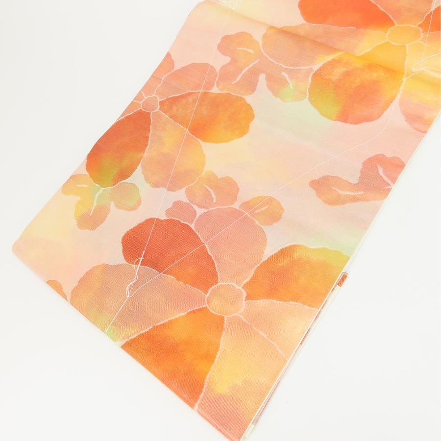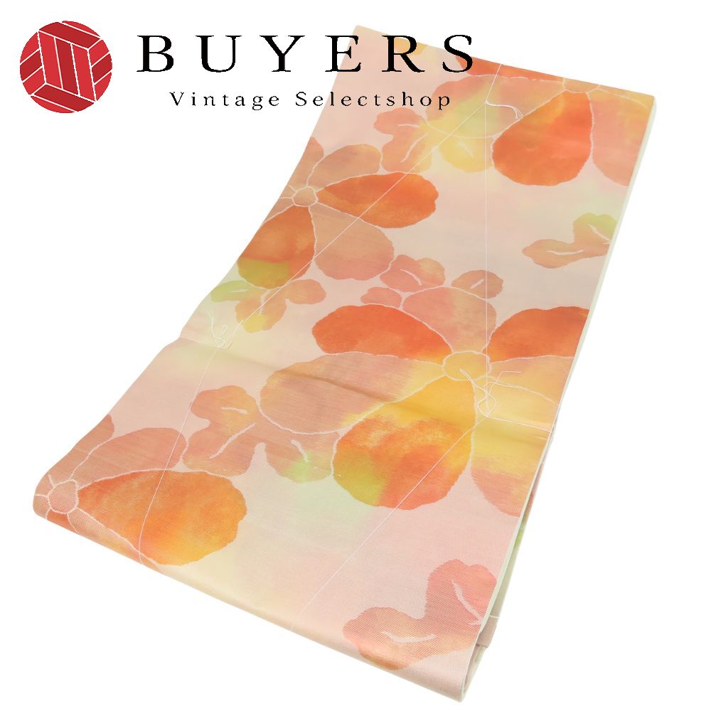 品名【中古】 名古屋帯 しつけ糸あり 九寸 正絹(金銀糸除く) ピンク系 オレンジ系 マルチカラー 名古屋仕立て ぼかし お洒落 レディース 女性