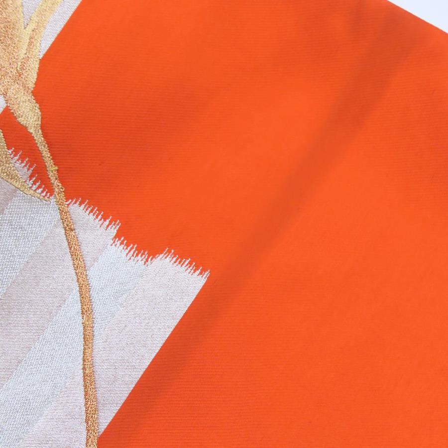 | 品名 | 【中古】 名古屋帯 九寸 お太鼓柄 正絹(金銀糸除く) 金銀糸 オレンジ系 ゴールド シルバー 名古屋仕立て モダン お洒落 レディース 女性 |