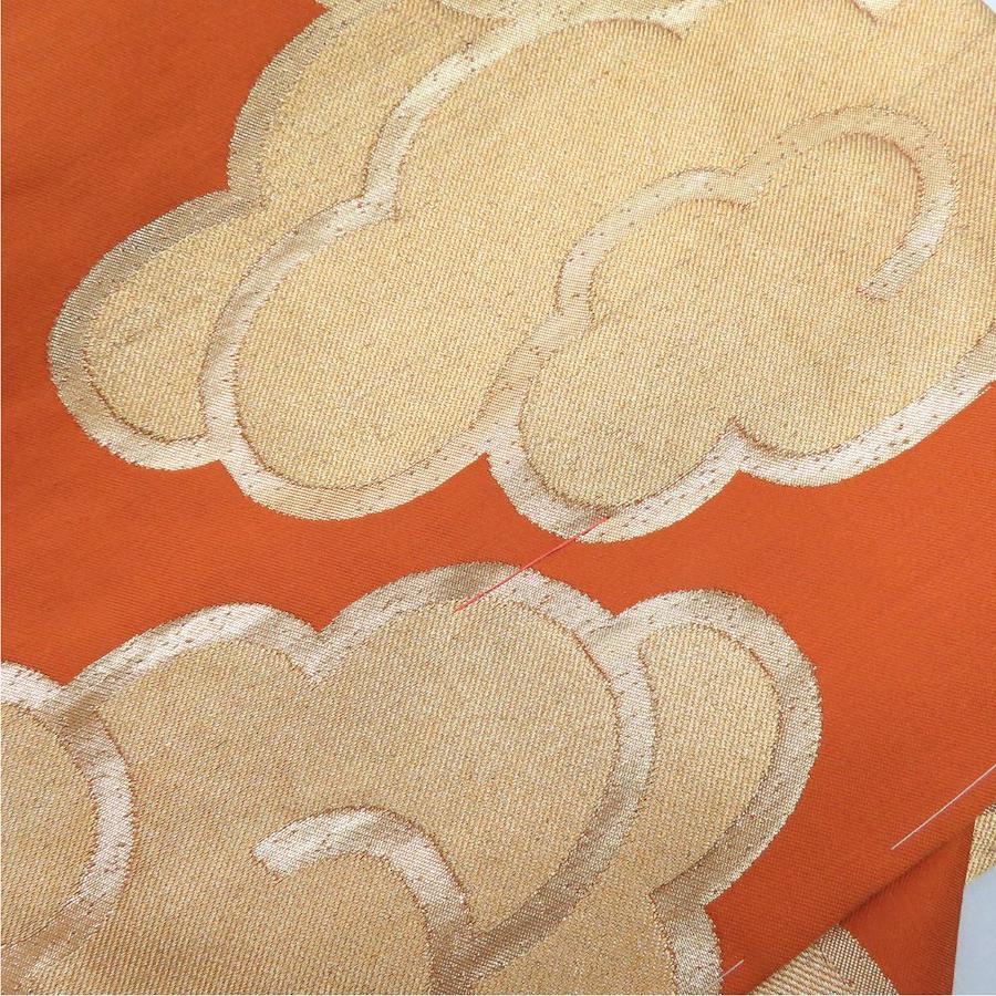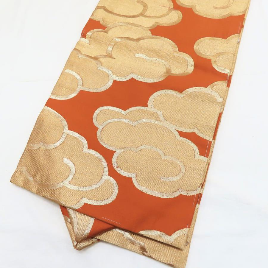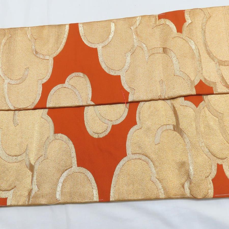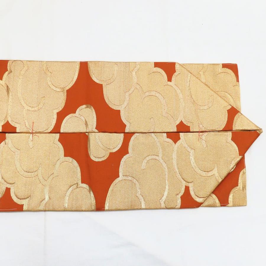 | 品名 | 【中古】 名古屋帯 九寸 しつけ糸あり 正絹(金銀糸除く) オレンジブラウン ゴールド 名古屋仕立て レディース 女性 |