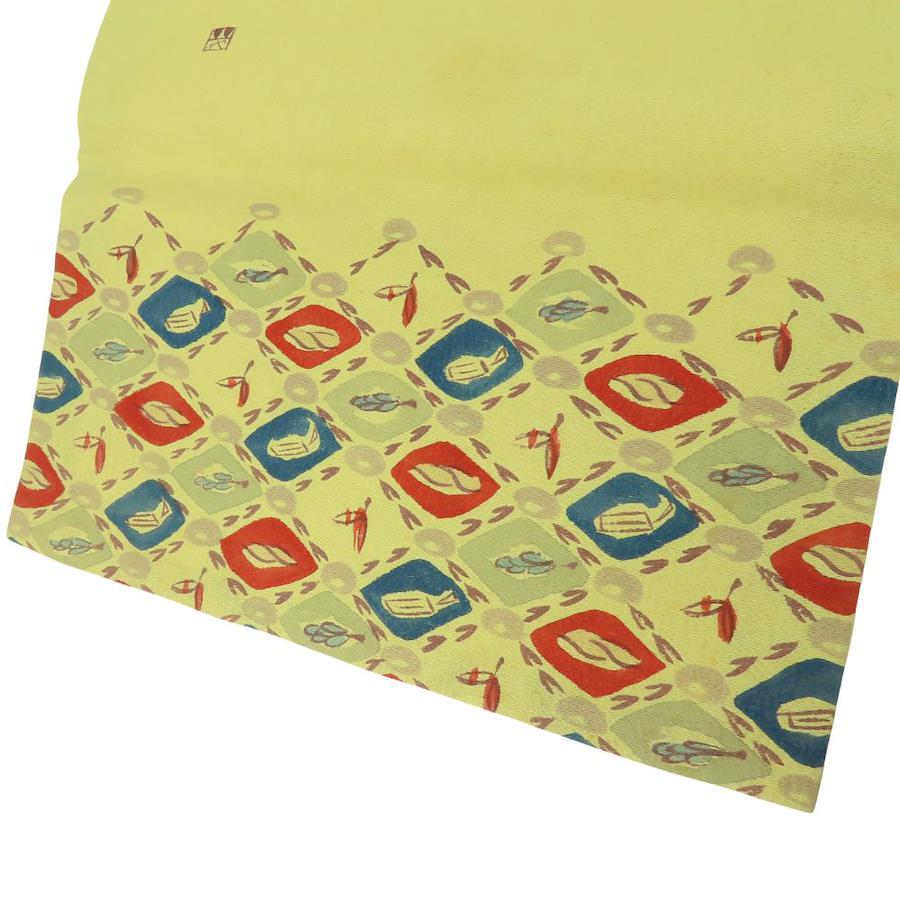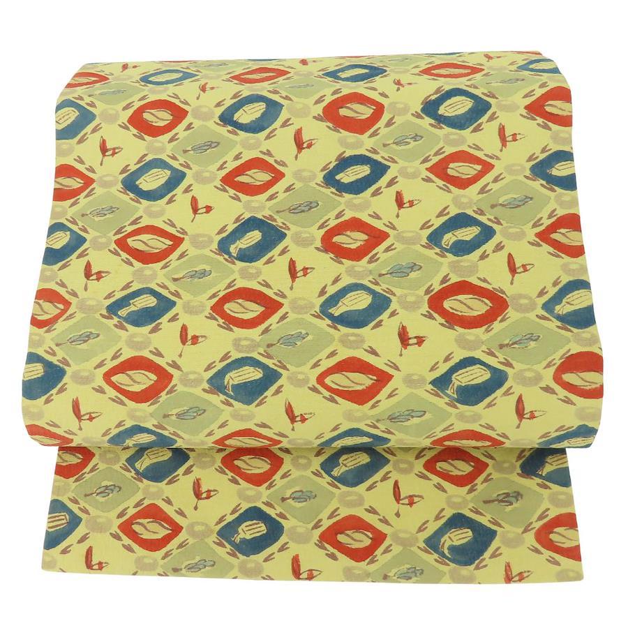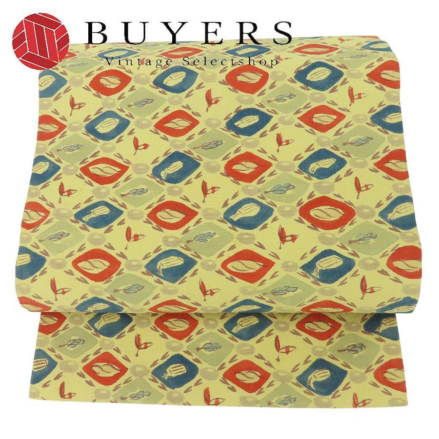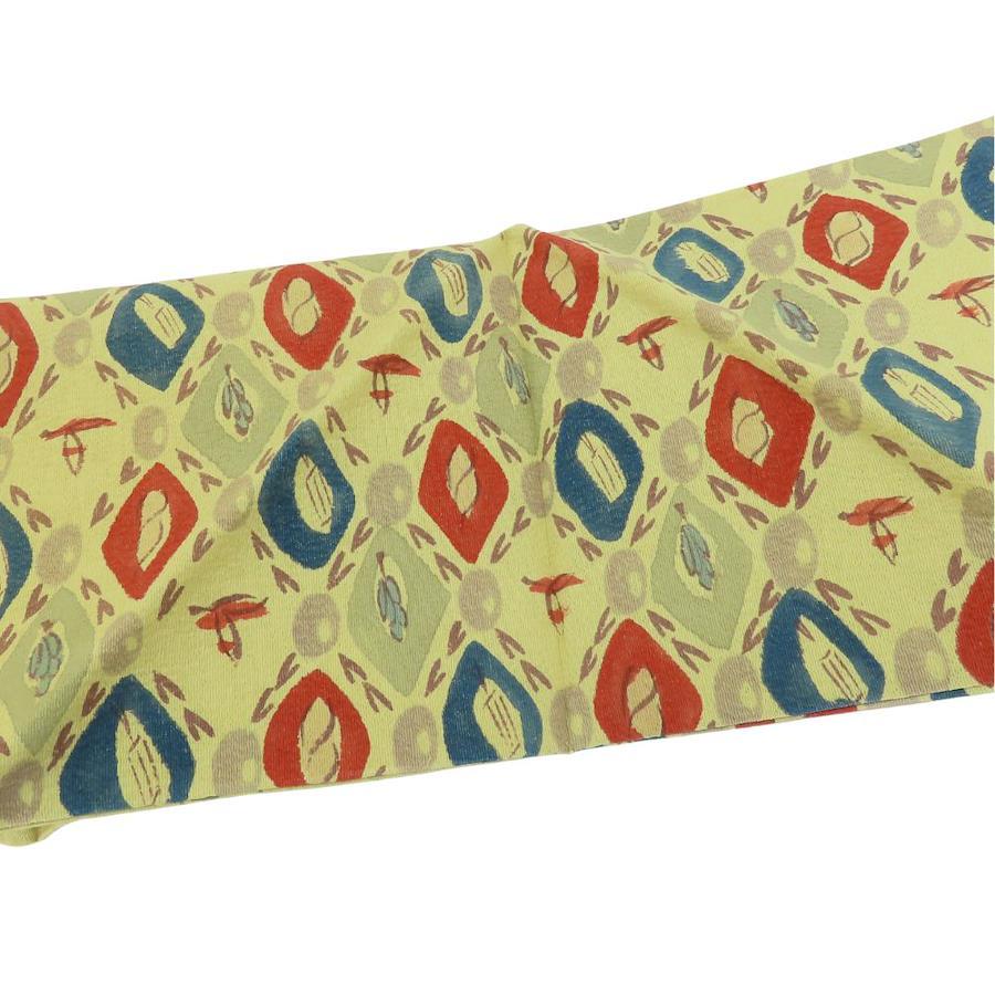 品名【中古】 名古屋帯 九寸 正絹(金銀糸除く) からし色系 マルチカラー 名古屋仕立て モダン 洒落帯 レディース 女性
