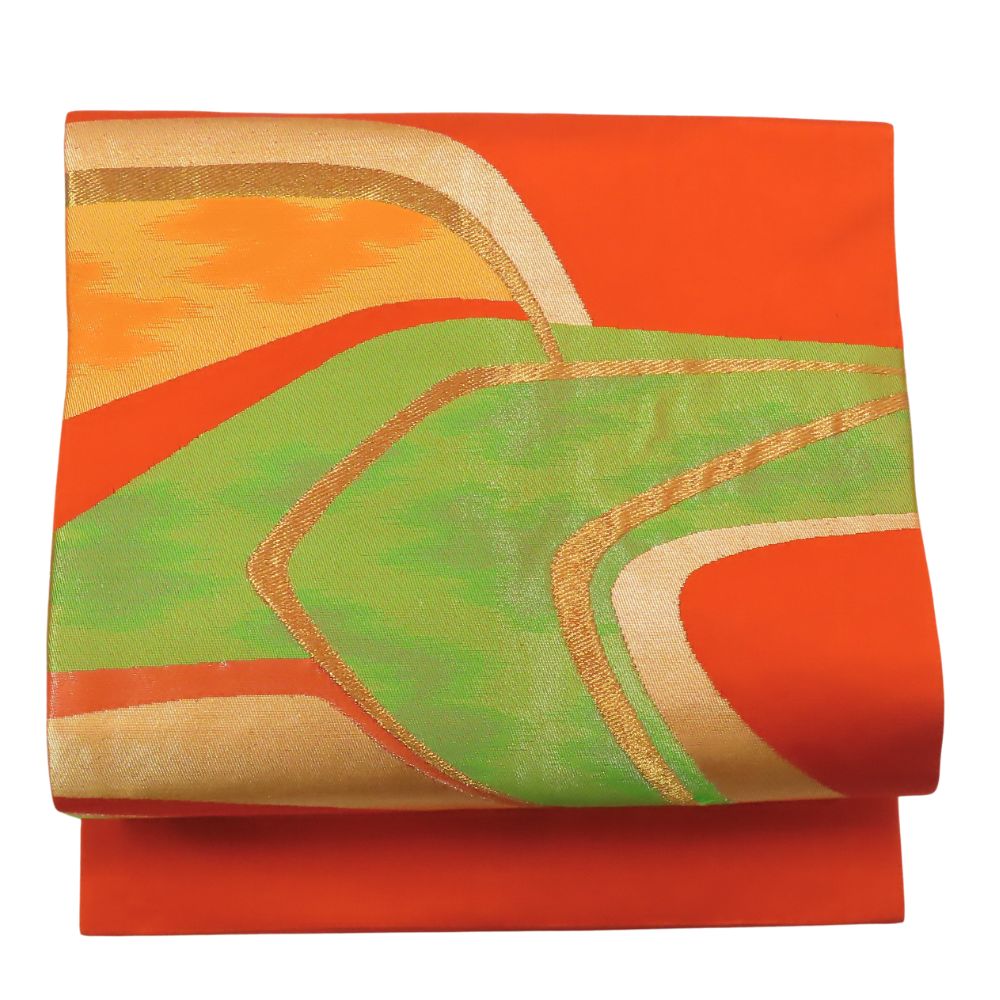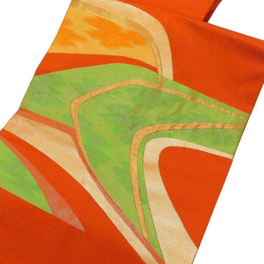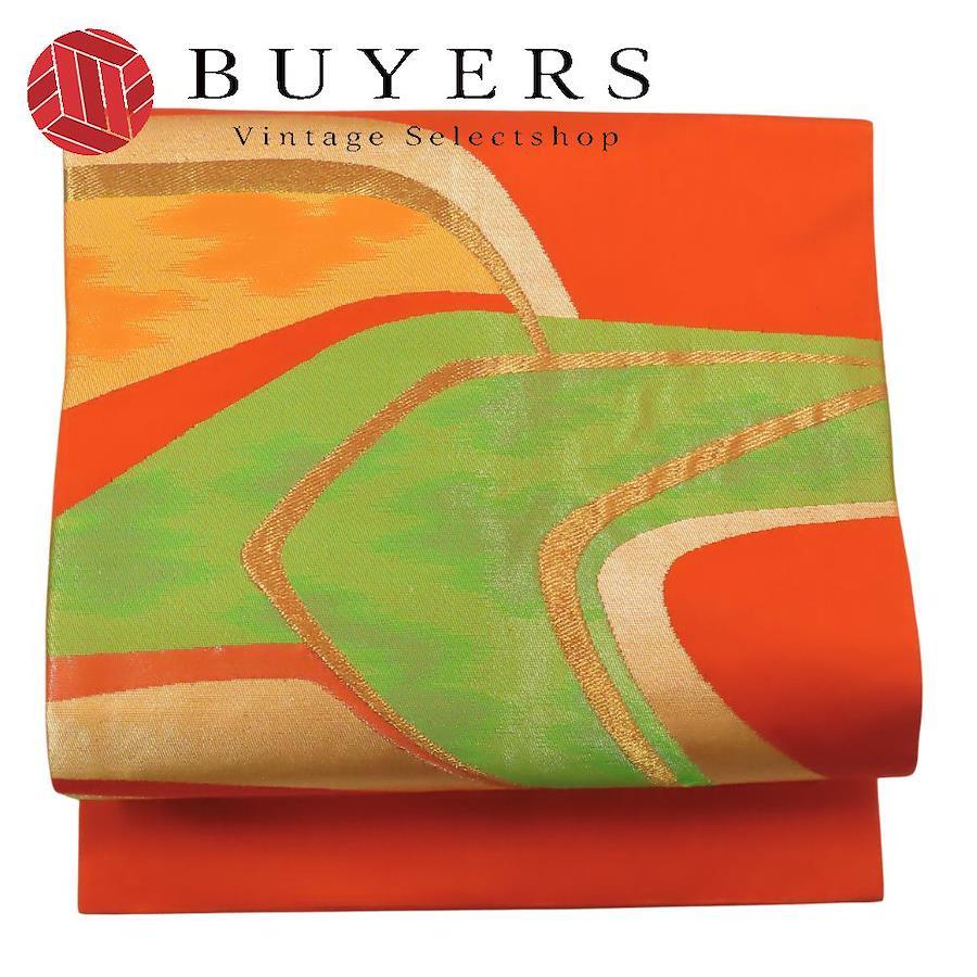 | 品名 | 【中古】 名古屋帯 九寸 正絹(金銀糸除く) オレンジ グリーン 名古屋仕立て レディース 女性 |