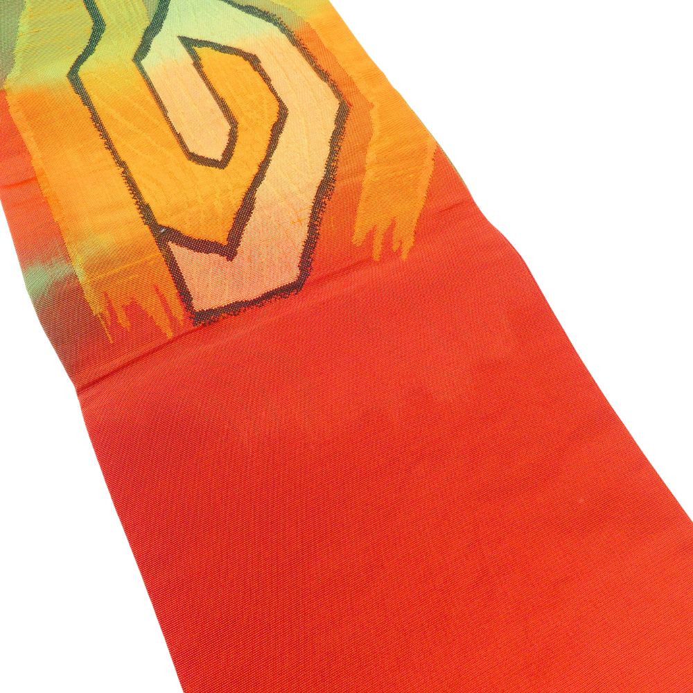 | 品名 | 【中古】 名古屋帯 九寸 正絹(金銀糸除く) レッド系 オレンジ グリーン 名古屋仕立て モダン 洒落帯 レディース 女性 |