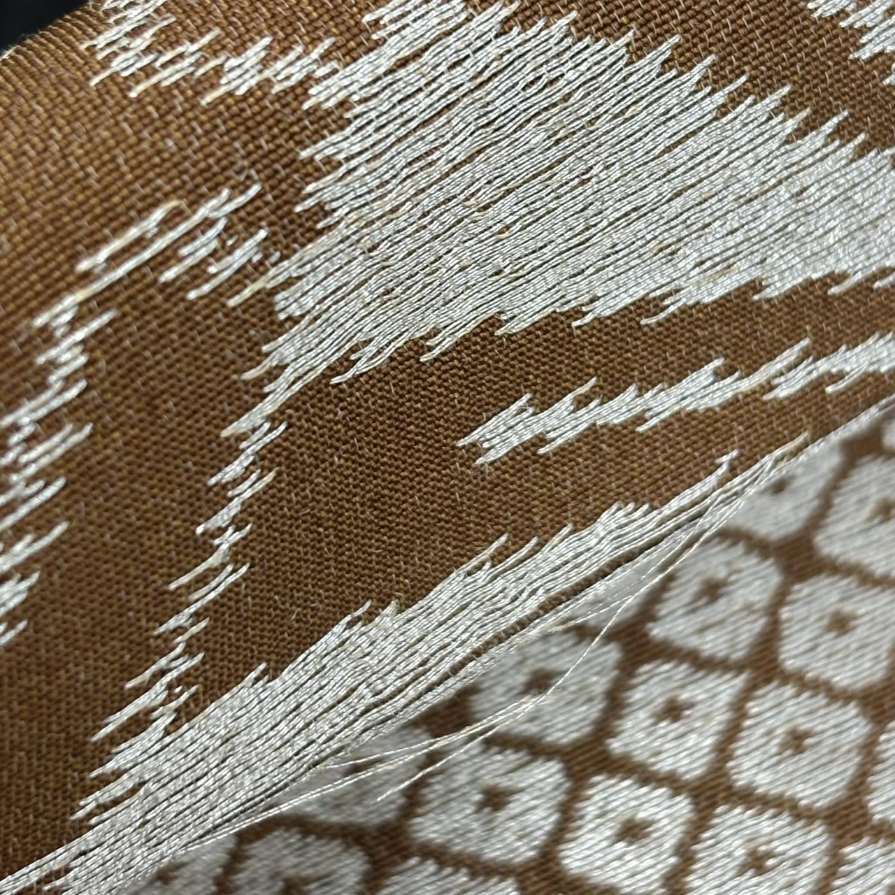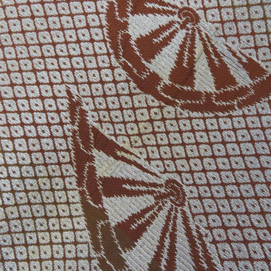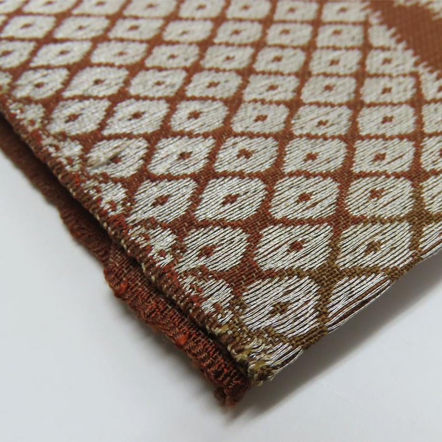 | 品名 | 【中古】 名古屋帯 八寸 正絹(金銀糸除く) ブラウン系 シルバー 松葉仕立て 洒落帯 六通柄 レディース 女性 |
