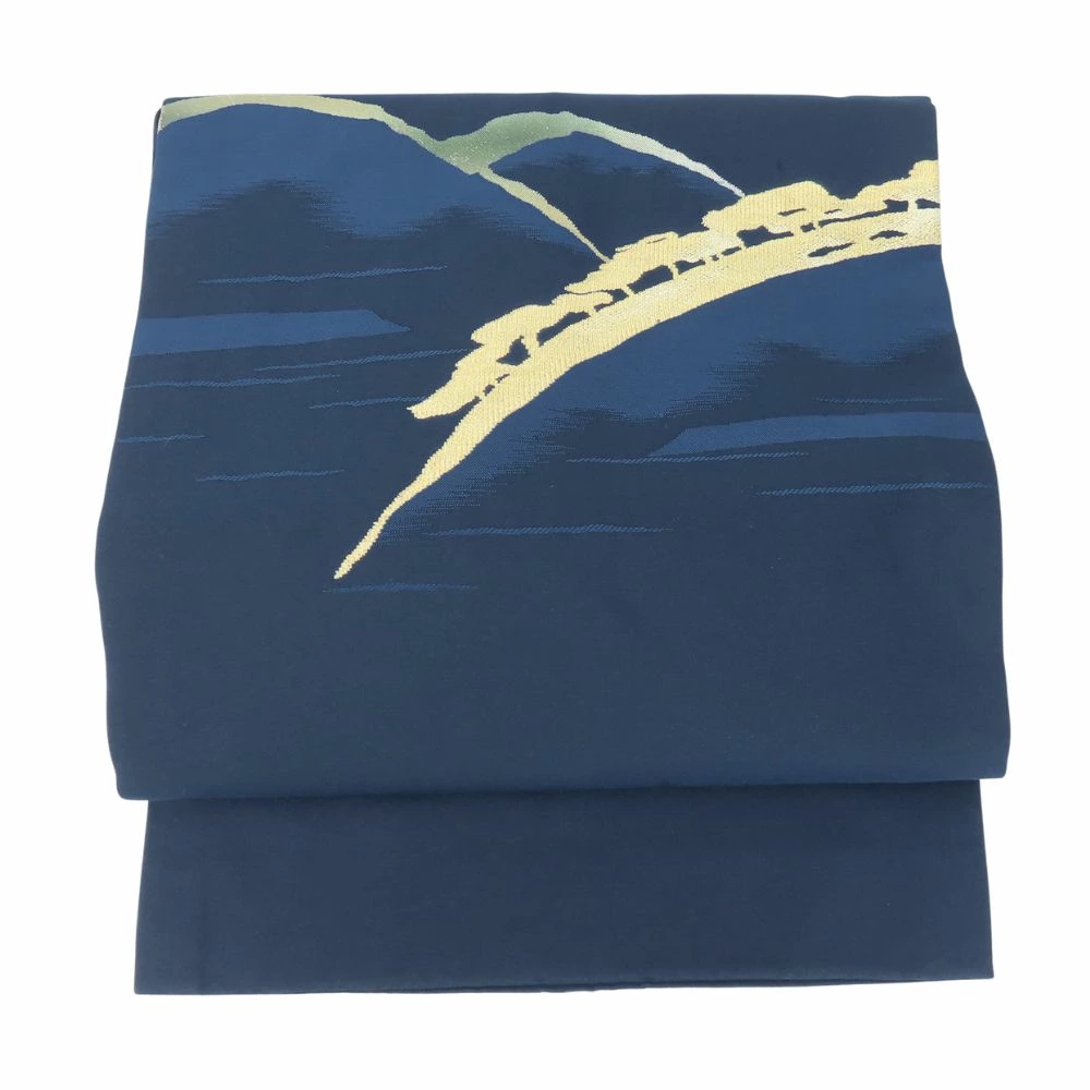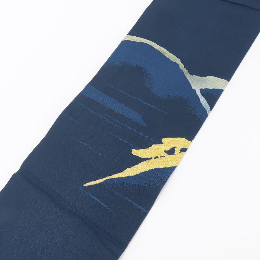 | 品名 | 【中古】 名古屋帯 正絹(金銀糸除く) 藍色 ブルー ゴールド 名古屋仕立て モダン お洒落 レディース 女性 |