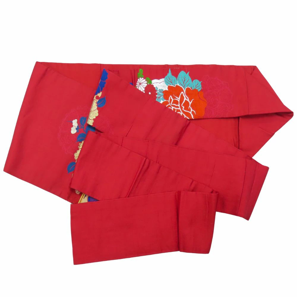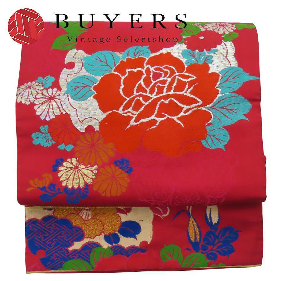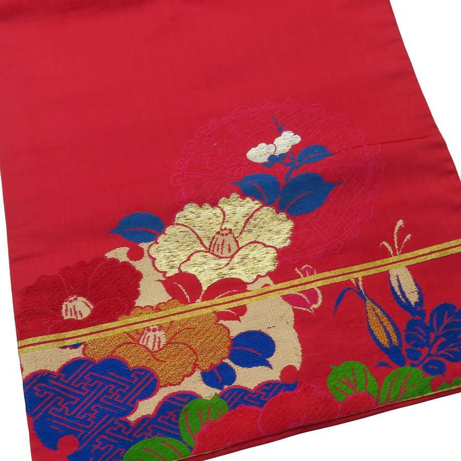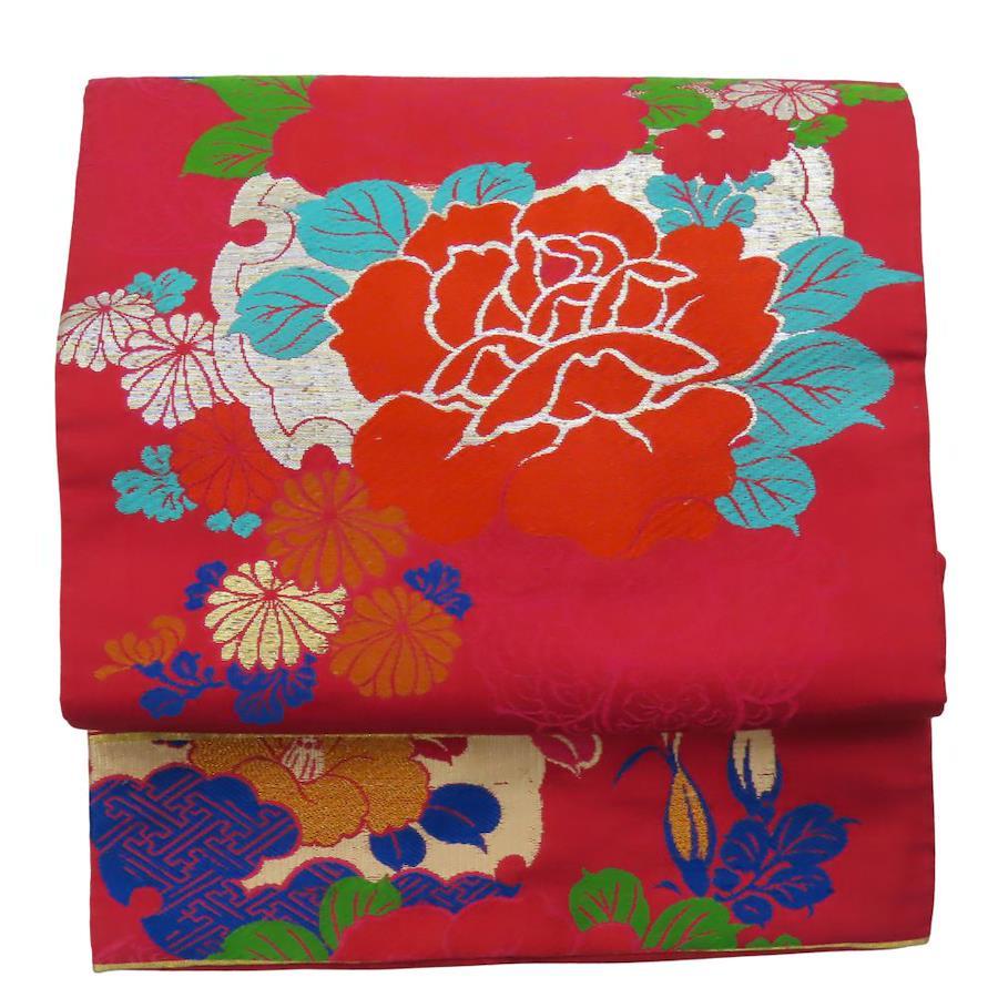 | 品名 | 【中古】 名古屋帯 正絹(金銀糸除く) 赤系 マルチカラー ピンク系 金銀 名古屋仕立て レディース 女性 |