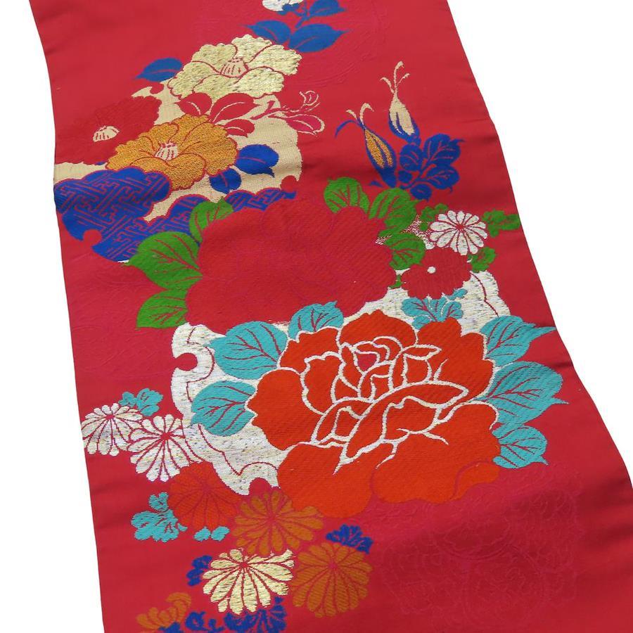 | サイズ | サイズ 全長:約 347cm 幅:約 29.5cm 帯の柄1:花々 帯の柄2:紗綾形_枠 重量:約550g |