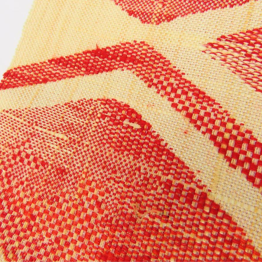 | 品名 | 【中古】 名古屋帯 紬 八寸 正絹(金銀糸除く) 生成り系 レッド 名古屋仕立て カジュアル お洒落 レディース 女性 |