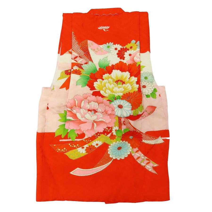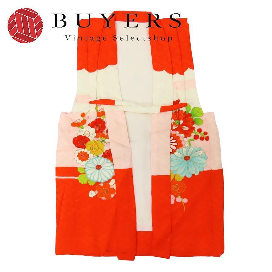 品名【中古】 子供着物 被布コート 七五三 化学繊維 朱色 ピンク系 女の子 3歳