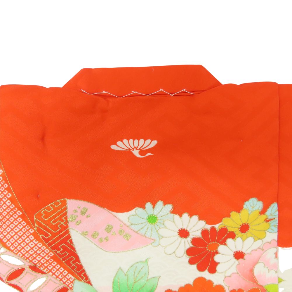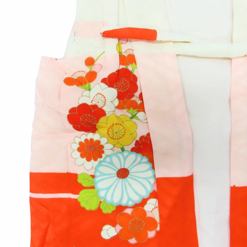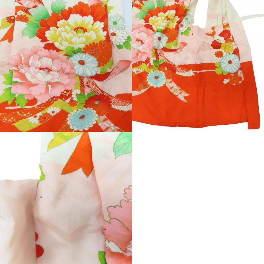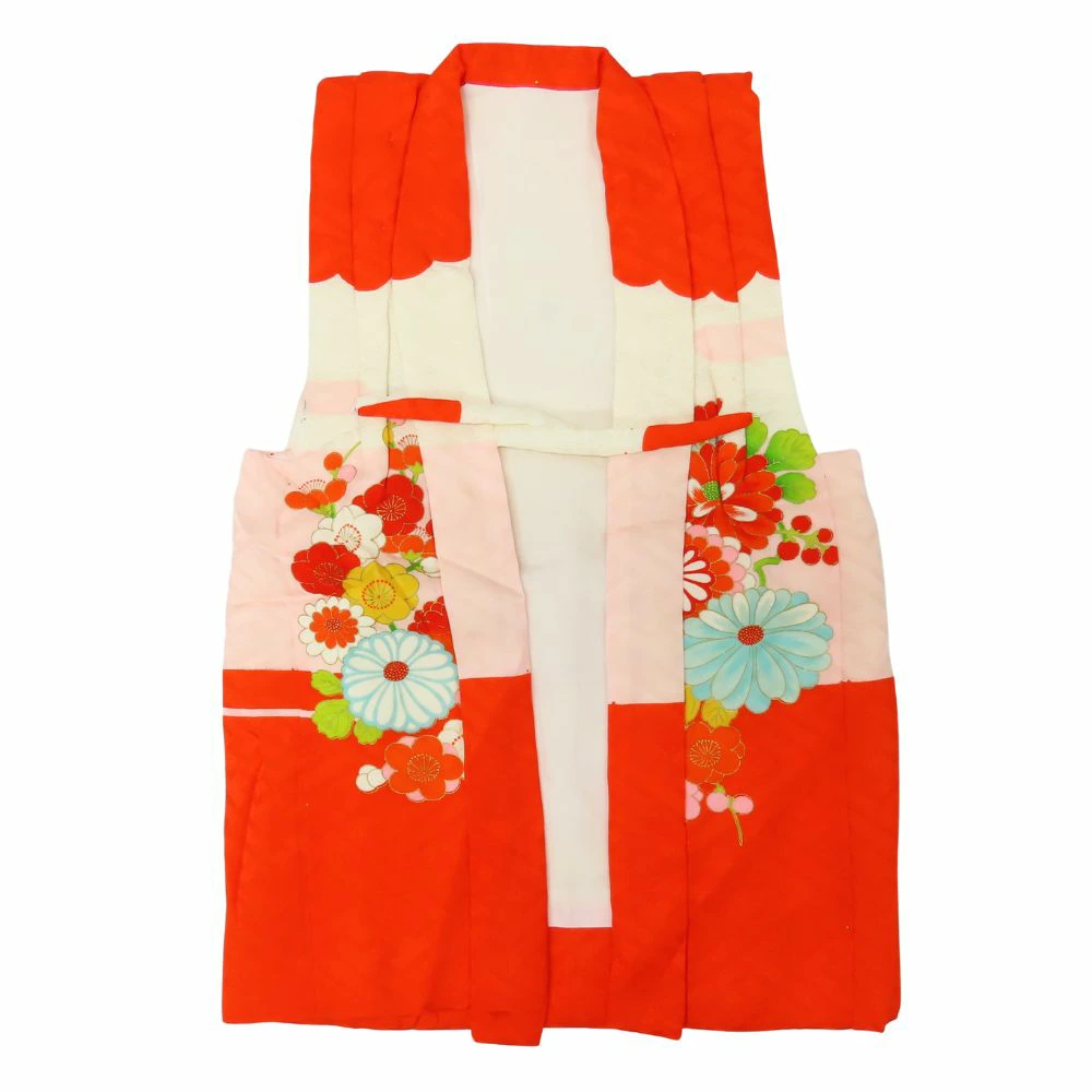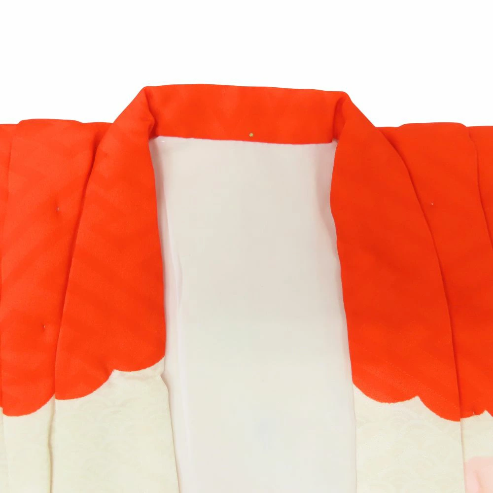 Used Children's Kimono/Hifu Coat, Shichi-Go-San, Synthetic Fiber, Vermilion and Pink, Girl, 3 Years Old, Japanese Clothing, Kimono