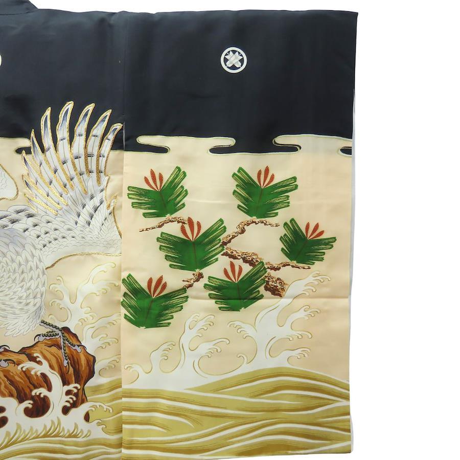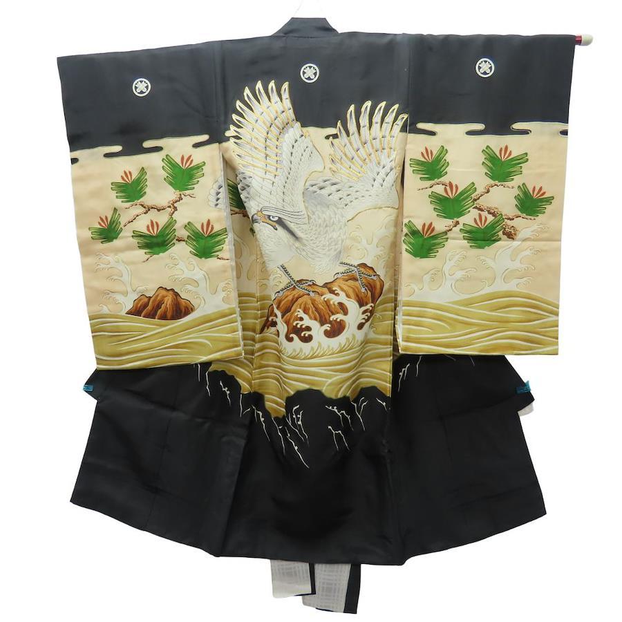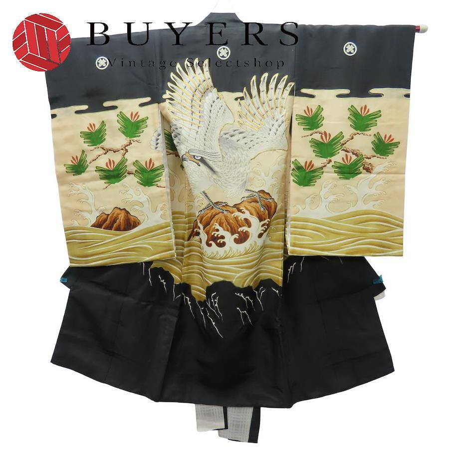 | 品名 | 【中古】 子供着物 襦袢付き 正絹 化学繊維 金糸 ブラック ゴールド系 男の子 祝い着 お宮参り |