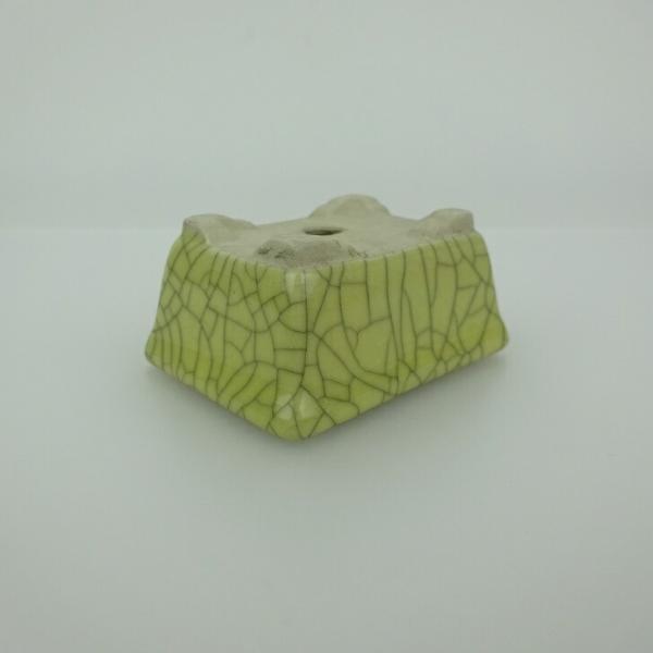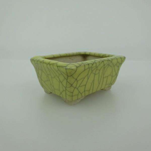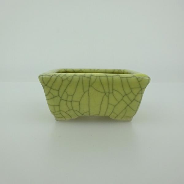 Used Bonsai Pot, Aoka, Small, Approximately 5.9cm Long, Rectangular, Rimmed, Crazing Glaze, Actual Condition, Used Pot