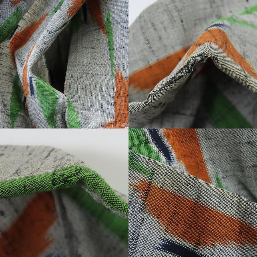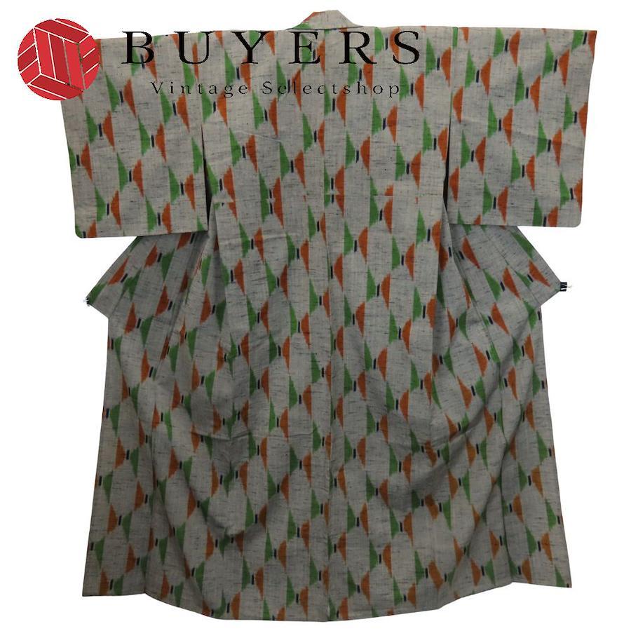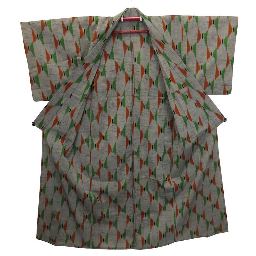 品名【中古】 紬 ウール グレー マルチカラー 単衣 幾何学模様 カジュアル レディース 女性