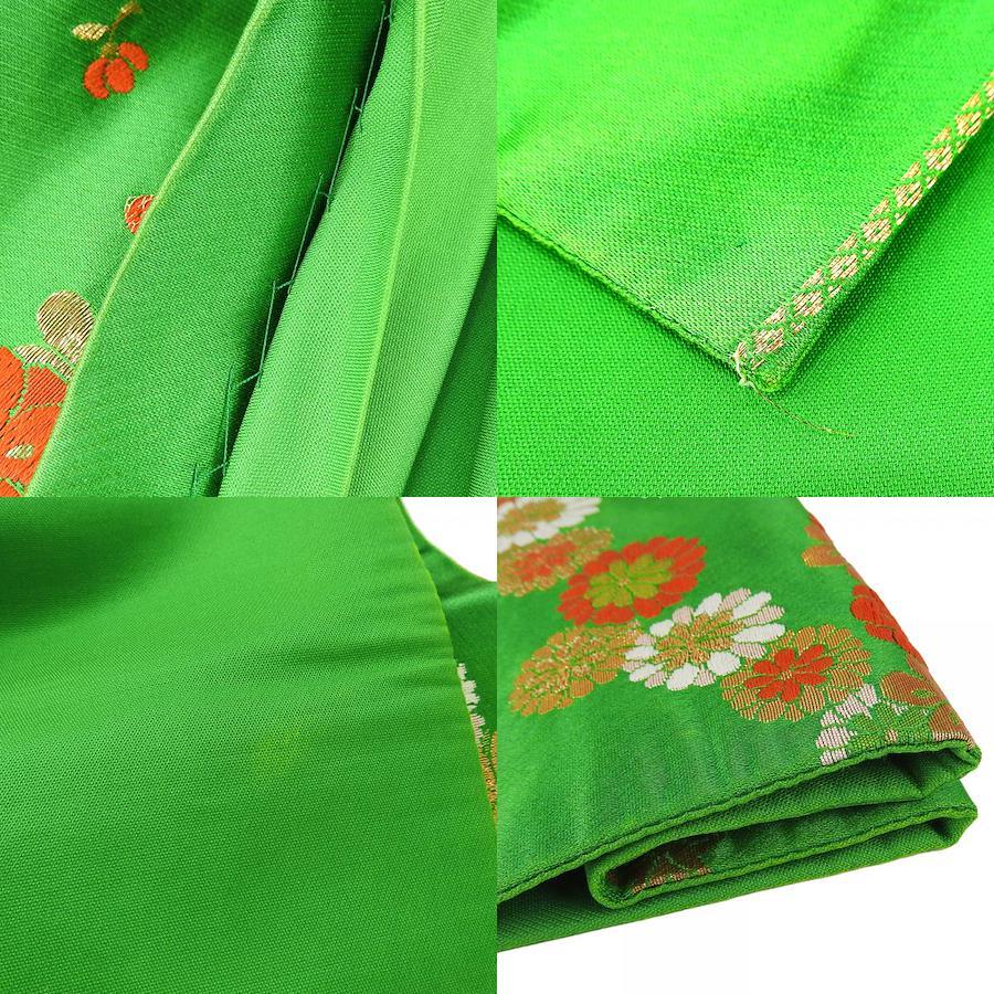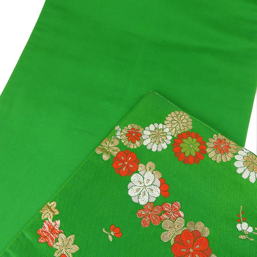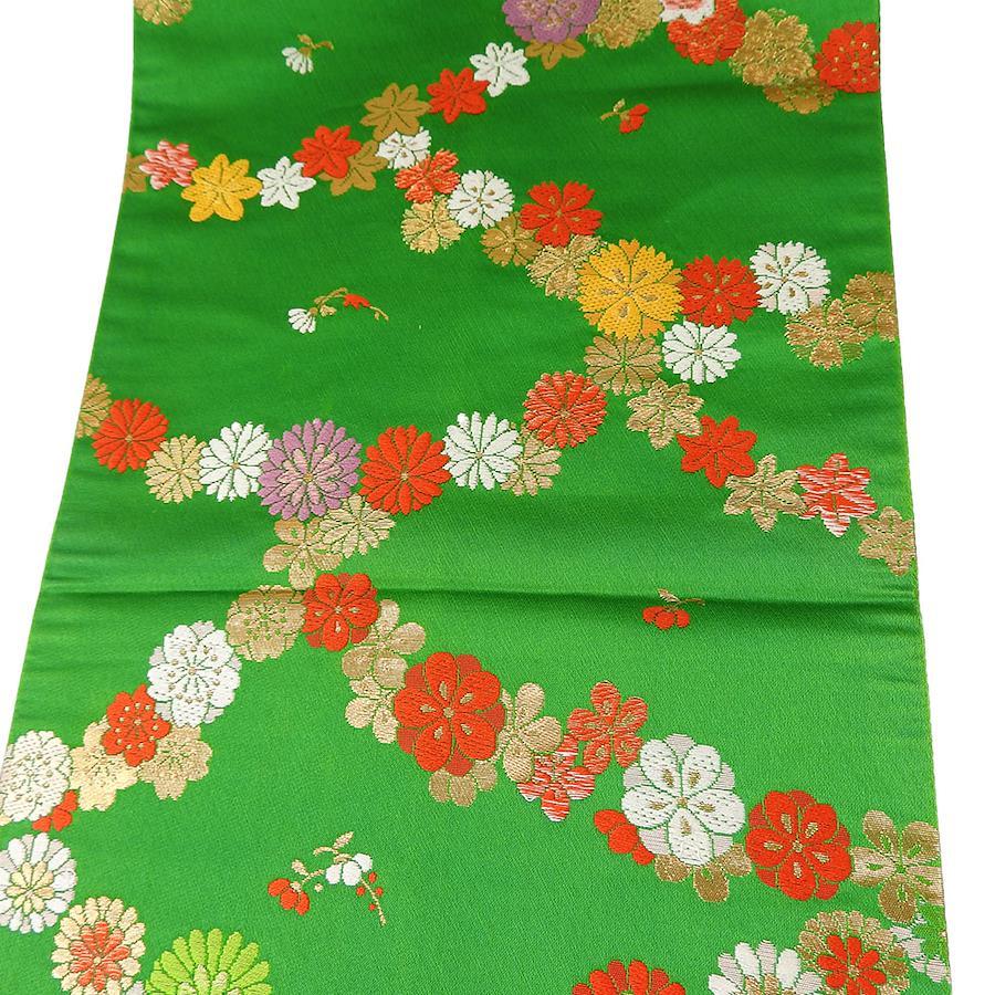 | 品名 | 【中古】 袋帯 七五三用 正絹(金銀糸除く) グリーン 女の子 花 |