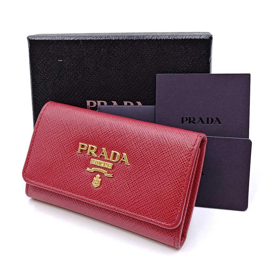Pre-owned Saffiano 4-Key Case, Metal, Four-Key Red, 1PG004, Women's, 45772