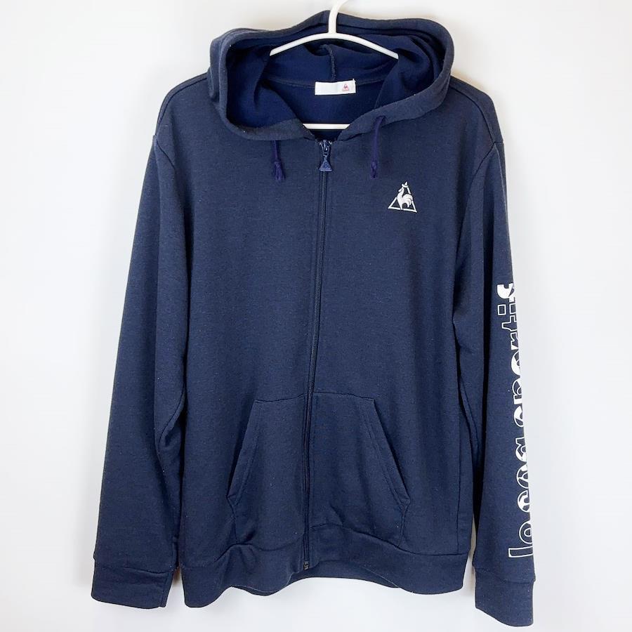 [タイプ] スウェットジャケット ジップアップパーカー[表記サイズ] L[対象] メンズ[型番] QMMOJC40[カラー] ネイビー[身幅] 約54cm[着丈] 約68cm[状態] 使用感があり、毛羽立ちがみられます。