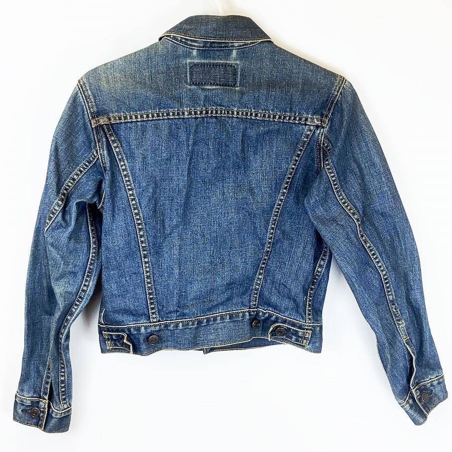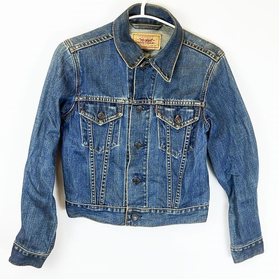[タイプ] デニムジャケット Gジャン[表記サイズ] S[対象] レディース[型番] 78500-0307[身幅] 約45cm[着丈] 約47cm[袖丈] 約57cm[肩幅] 約38cm[状態] 使用感があり、汚れやボタンを通す穴にほつれがみられます。