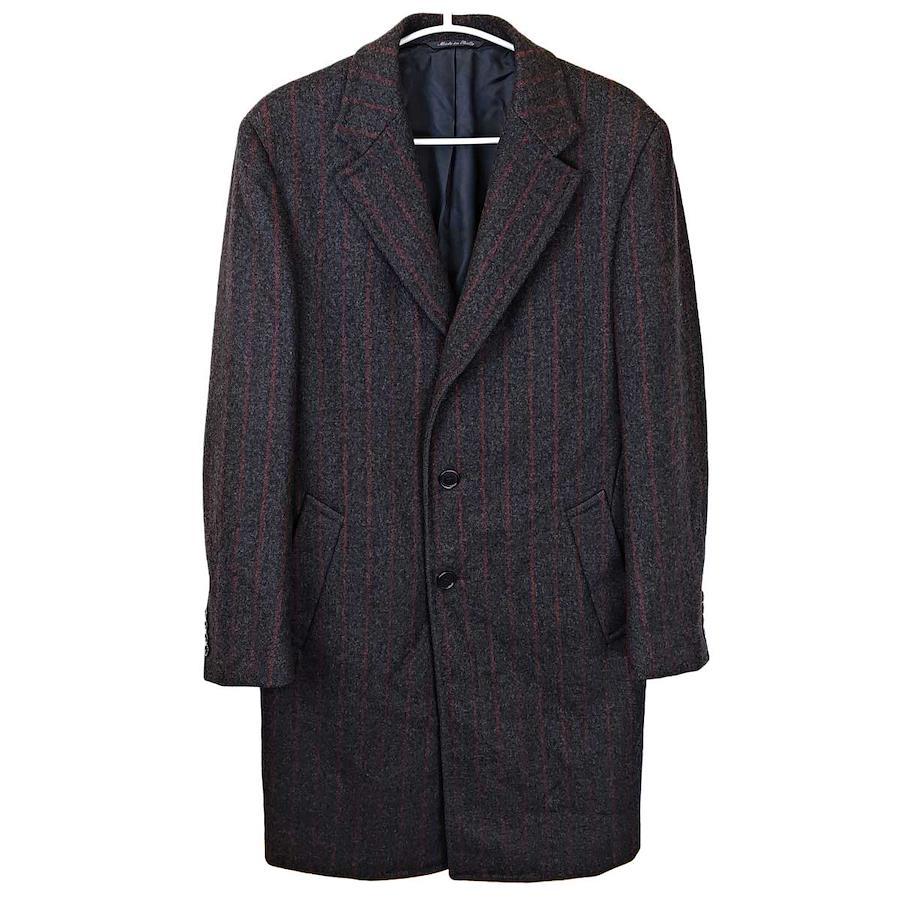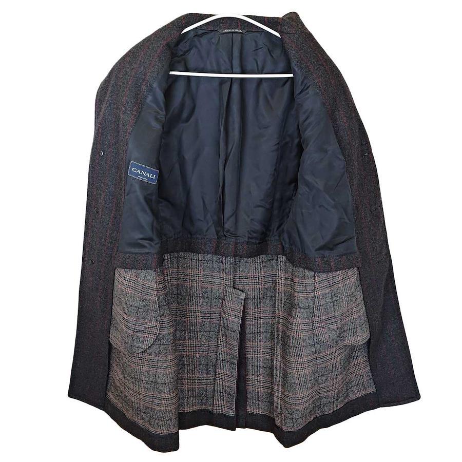 [ブランド] CANALI カナーリ[タイプ] WOOLMARK ストライプ コート[表記サイズ] 46[対象] メンズ[身幅] 約49cm[着丈] 約99.5cm[袖丈] 約65cm[肩幅] 約45cm[状態] 使用感や多少のほつれがあります。内側中央辺りに縫い付けがとれ、穴がある箇所がみられます。