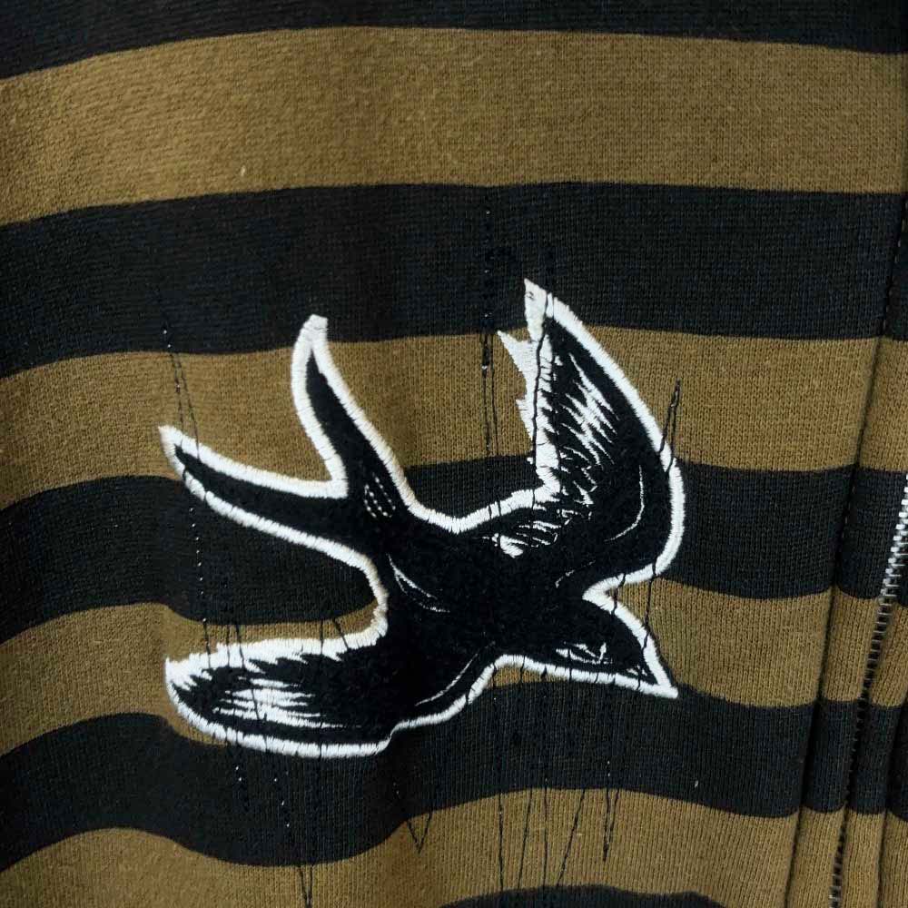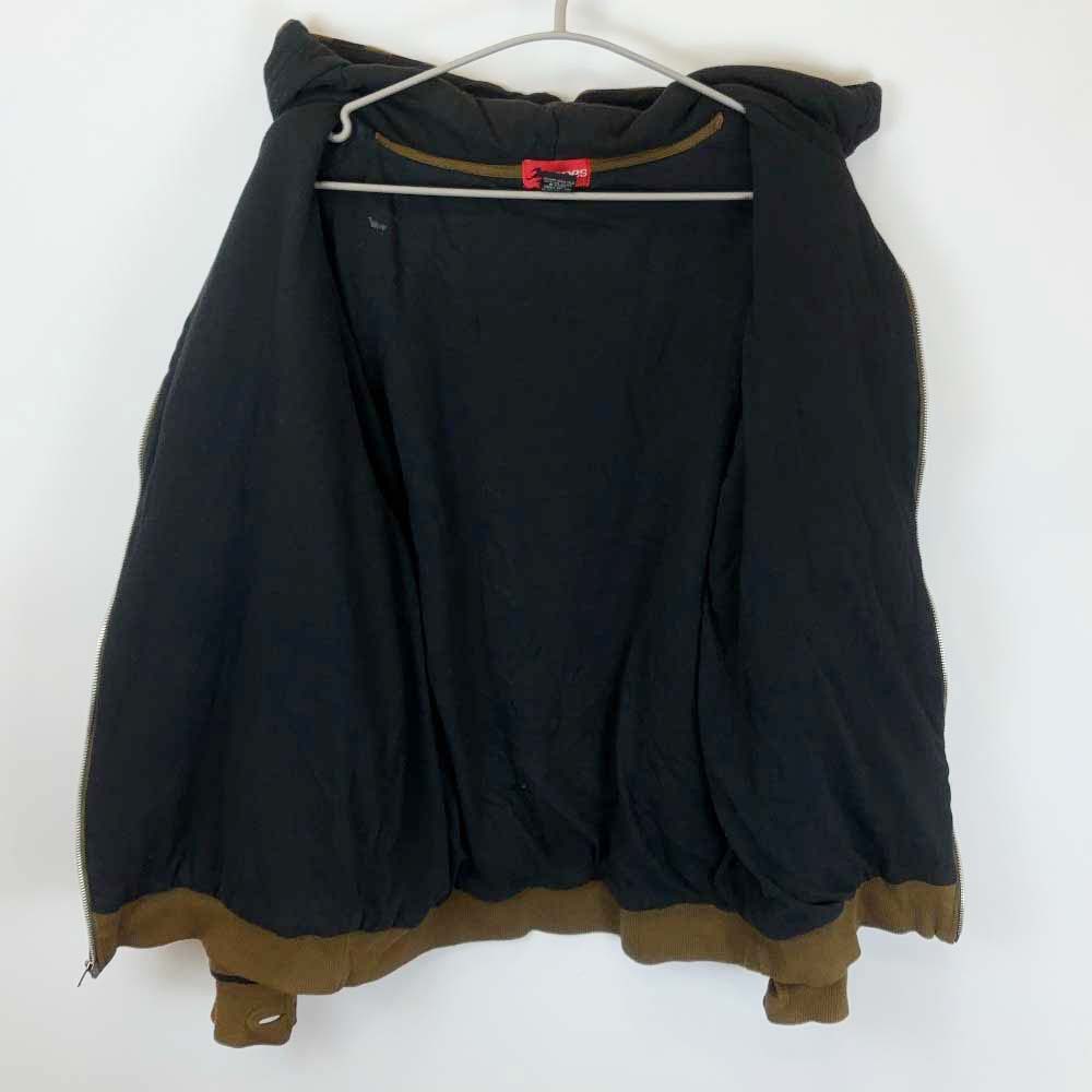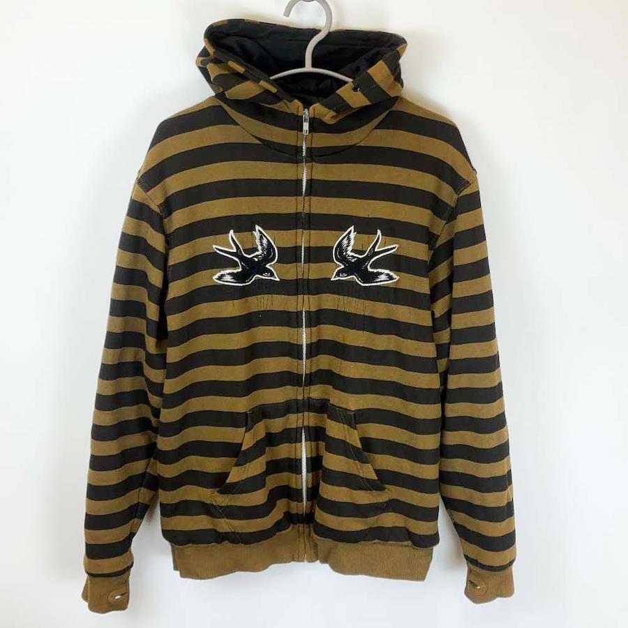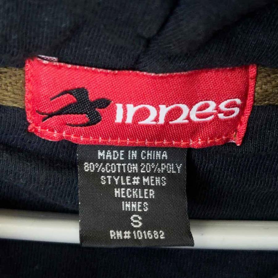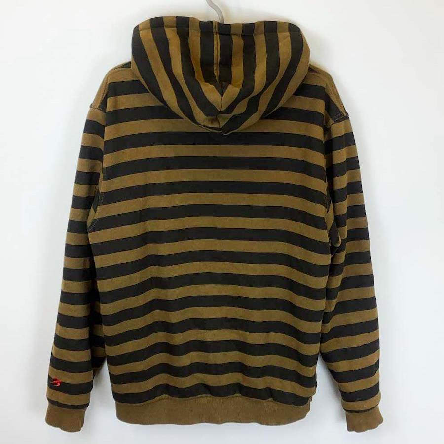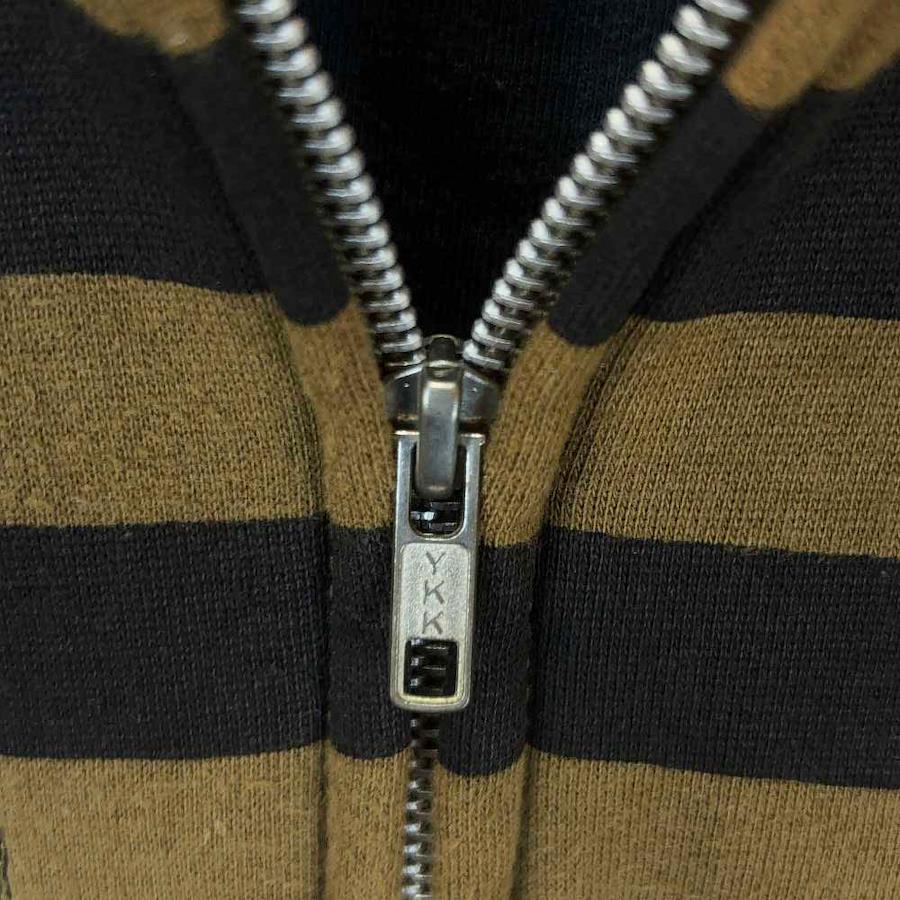[ブランド] innes イネス[タイプ] フルジップ パーカー 刺繍ロゴ ボーダー[表記サイズ] S[対象] メンズ[カラー] カーキ x ブラック[身幅] 約56cm[着丈] 約65cm[状態] 使用感があり、汚れや毛羽立ちがみられます。また、タバコの匂いがします。