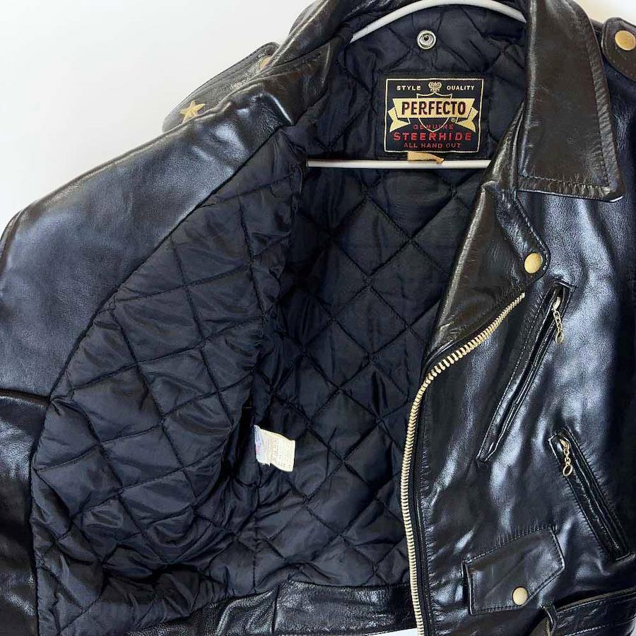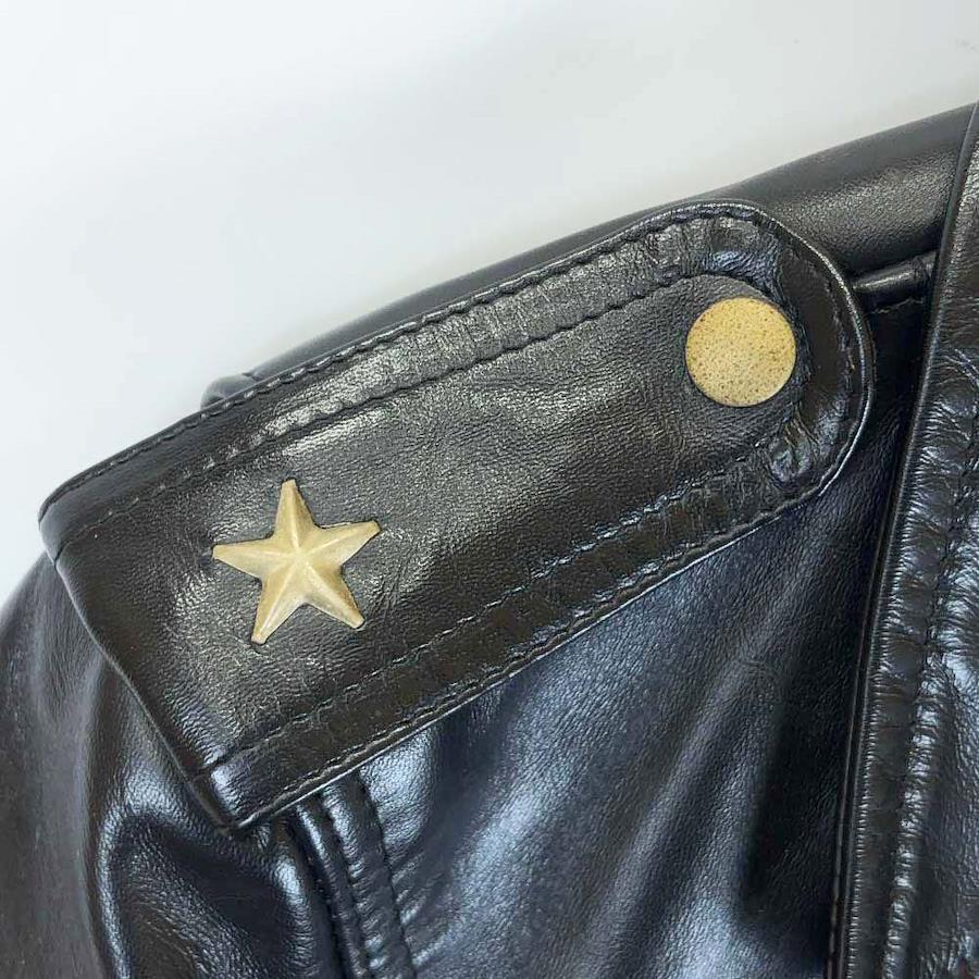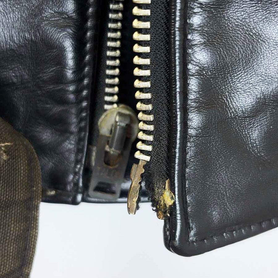[ブランド] Schott ショット[タイプ] PERFECTO 613XH ワンスター ダブル ライダースジャケット[表記サイズ] 36[対象] メンズ[カラー] ブラック[身幅] 約46cm[着丈] 約56cm[袖丈] 約58cm[肩幅] 約43.5cm[状態] 使用感があり、しわがみられます。ファスナーの根本部分が破損しており、開閉ができません。また、タバコの匂いがします。