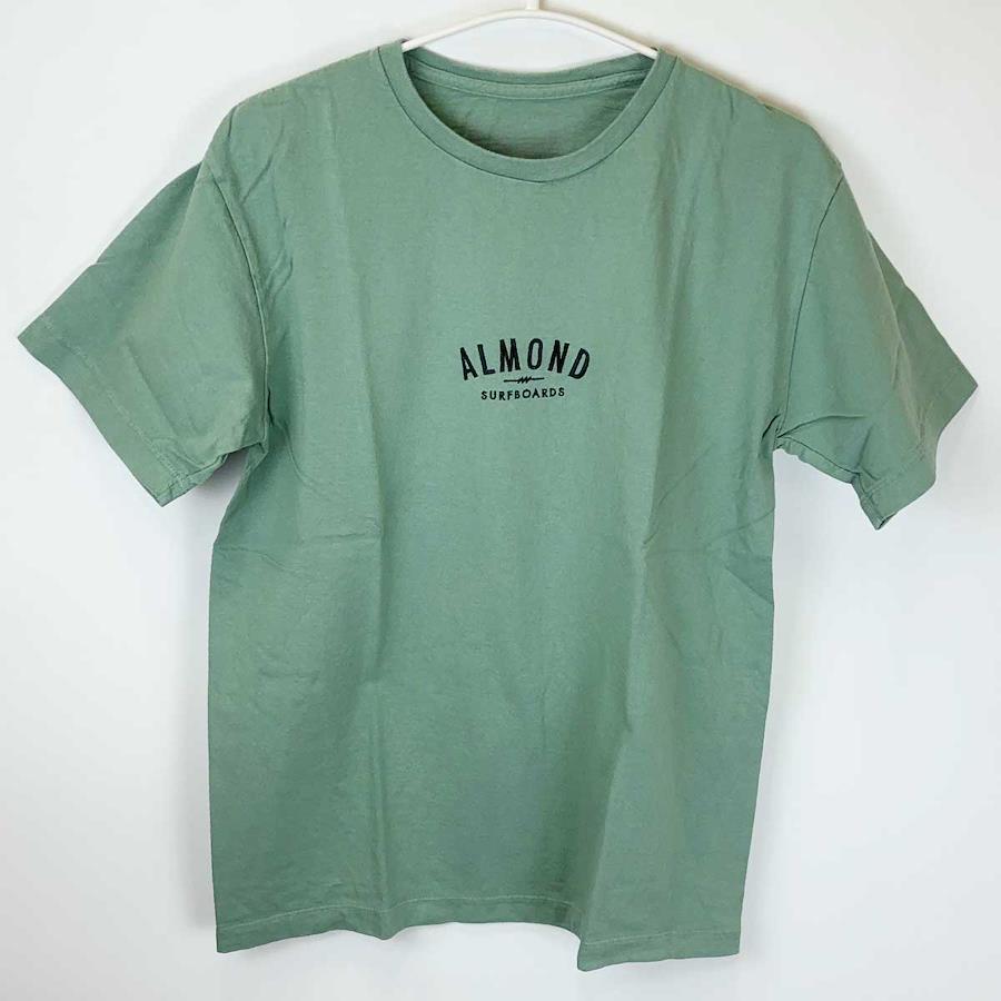 [ブランド] Almond Surfboards & Design アーモンドサーフボードデザイン[タイプ] FINE SURFING EMB 半袖 Tシャツ[表記サイズ] M[対象] ユニセックス[型番] TS2110S[カラー] GRASS[身幅] 約50cm[着丈] 約64cm[状態] 未使用品
