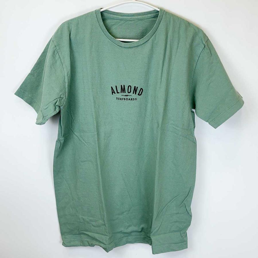 [Pre-owned/Unused] Almond Surfboards & Design FINE SURFING EMB Short Sleeve T-Shirt 14039 GRASS TS2110S Unisex USA Cotton