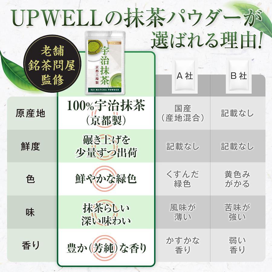 京都・宇治の老舗茶問屋監修 ― 至高の抹茶体験をご自宅で 創業100年以上の老舗が監修する、本格宇治抹茶パウダー。 出荷直前に丁寧に挽き上げることで、抹茶本来の「香り・旨み・鮮やかな緑色」を最大限に引き出しています。 まるで茶室で点てたような深いコクと芳醇な香りを、日常の一杯でお楽しみいただけます。スイーツ・ラテ・料理に万能な極細パウダー 宇治抹茶はそのまま飲むだけでなく、抹茶ラテ・ケーキ・クッキー・アイスなどのスイーツや、パスタやパンなどのお料理にも最適。 極細に挽かれたパウダーはダマになりにくく、牛乳や豆乳にも溶けやすいので初心者でも失敗しません。 ご家庭で、まるでプロが作ったかのようなクオリティの抹茶スイーツが実現します。カテキン・テアニン・食物繊維が豊富 ― 美容と健康をサポート 茶葉を丸ごと粉末にした抹茶は、緑茶の数倍もの栄養を含んでいます。 ・カテキンによる強力な抗酸化作用 ・テアニンによるリラックス&集中力向上 ・ビタミン・ミネラル・食物繊維による健康維持 日々のストレスや美容ケアに、自然の力でサポートします。無添加・自然製法 ― 家族全員で安心 香料・着色料・保存料は一切不使用。 自然の恵みだけをそのままに詰め込んだ、無添加・純粋な宇治抹茶です。 小さなお子様から高齢の方まで、どなたでも安心してお飲みいただけます。コストパフォーマンス抜群 ― 毎日の贅沢が手の届く価格に 高級抹茶なのに、カフェでの1杯分以下のコストで贅沢な抹茶ラテを楽しめる。 1袋で何杯分も楽しめるため、毎日の習慣としても家計に優しいのが魅力です。【免責事項】メーカーによる商品リニューアルに伴いパッケージ(内容量も含む)変更が行われた場合、新パッケージでお届け致します事ご了承願います。