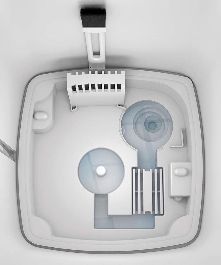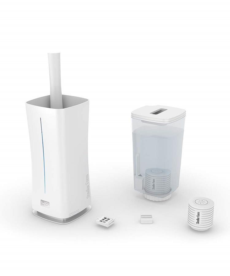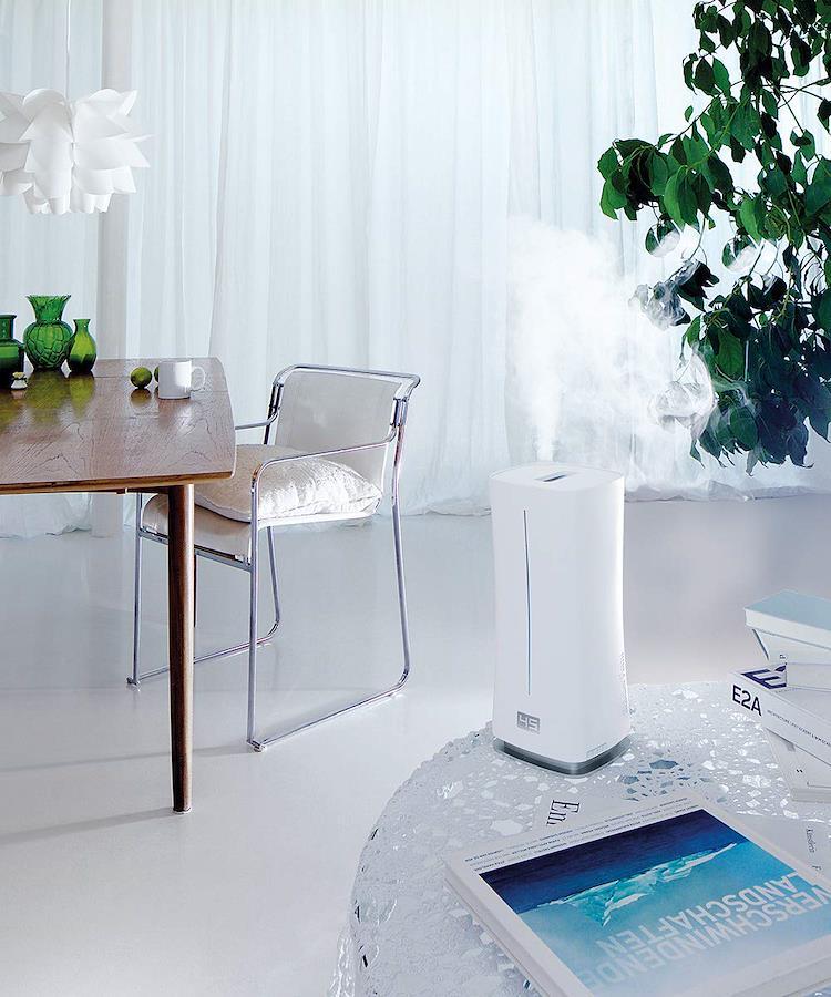 Eva のデザインはそのままに、小型化したハイパワーな超音波式加湿器Eva littleは、わかりやすいディスプレイと簡単な操作性はもちろん、自動湿度調整機能やアロマディフューザーとしての機能など充実の機能を搭載。カルキと細菌・バクテリア対策のオプションパーツも最初から付属しているので、すぐに快適に使い始められます。