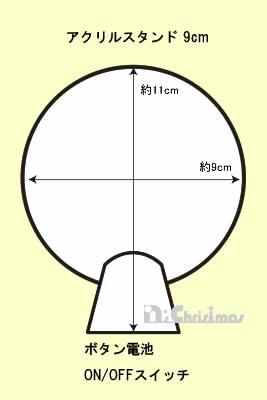 縦幅:最大約11cm横幅:最大9cm材質:アクリル・その他ボタン電池2個付属(CR2032)室内仕様