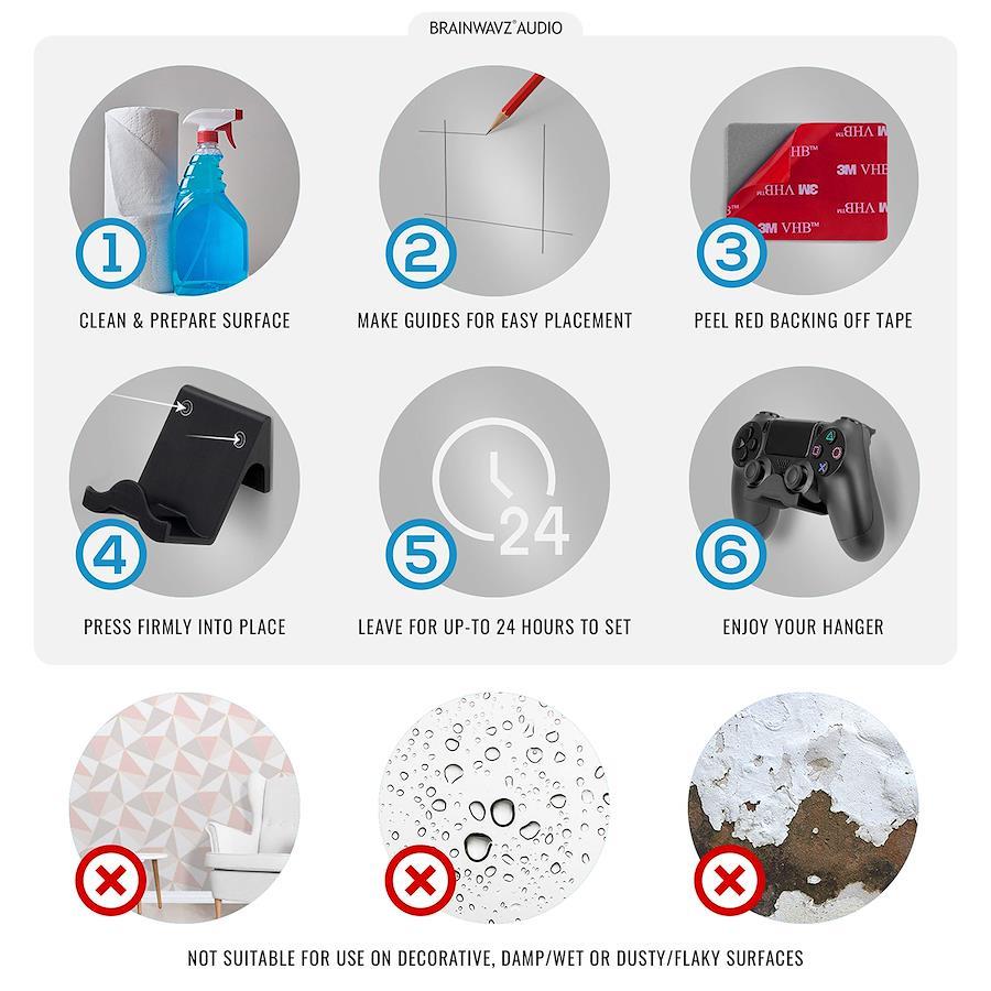PS4 ゲームコントローラ用垂直面用ハンガー頑丈で軽量設計強力な3M VHB 両面粘着テープ