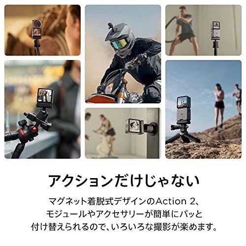 通常1-5営業日で発送:高温の対処方法 - DJI Action 2は素材にアルミニウム合金を使用しており、熱が伝わりやすく、熱放出が早い傾向があります。 Action 2では、4K/120fps動画撮影に対応しており、撮影中は負荷がかかるので、カメラユニットが熱くなることは異常ではありません。/温度の上昇速度の制御方法 - 動画解像度を下げる方法があります。例えば、1080p(省電力モード)で動画撮影すると、Action 2の温度の上昇速度は比較的ゆっくりになり、熱くなりすぎません。/様々なアクセサリーを素早く装着 - Action 2のマグネット着脱式デザインは、簡単にアクセサリーを付け替えることができ、いつでも撮影できます。Action 2の様々なアクセサリーを装着して、旅先の様子をクリエイティブな方法で映像に残しましょう。/どこでもアクション撮影 - DJI Action 2は、超コンパクトなので、荷物の多い旅行でも余裕で持っていくことができます。磁気ストラップや磁気ヘッドバンドを使えば、この軽量なカメラを胸部や頭部に簡単に取り付けて、あなたが見ている世界をそのまま撮影することができます。/映像の素晴らしさは、一目瞭然 - 細部まで描き出し、驚くほど滑らかな4K/120fps動画を撮影できます。Action 2の超広角FOVで、被写体周辺の様子をもっと捉えることができます。/タップするだけでの簡単編集 - DJI MimoアプリのAI編集を使えば、自動的にシーンを選択して、それらをつなぎ合わせ、美麗なトランジションとアップビートな音楽で印象的な映像を作り出します。/あっと驚く映像を撮影 - DJI Action 2のカメラユニットは丈夫で防水性を備えていますが、防水ケースと一緒に使えば、もっ