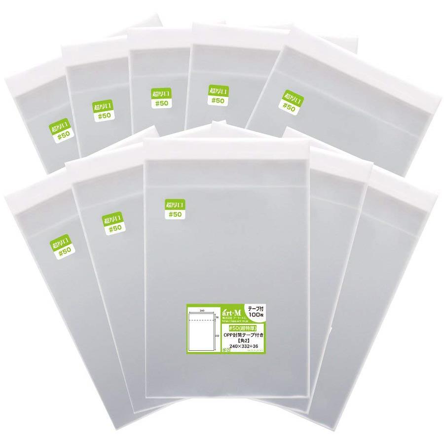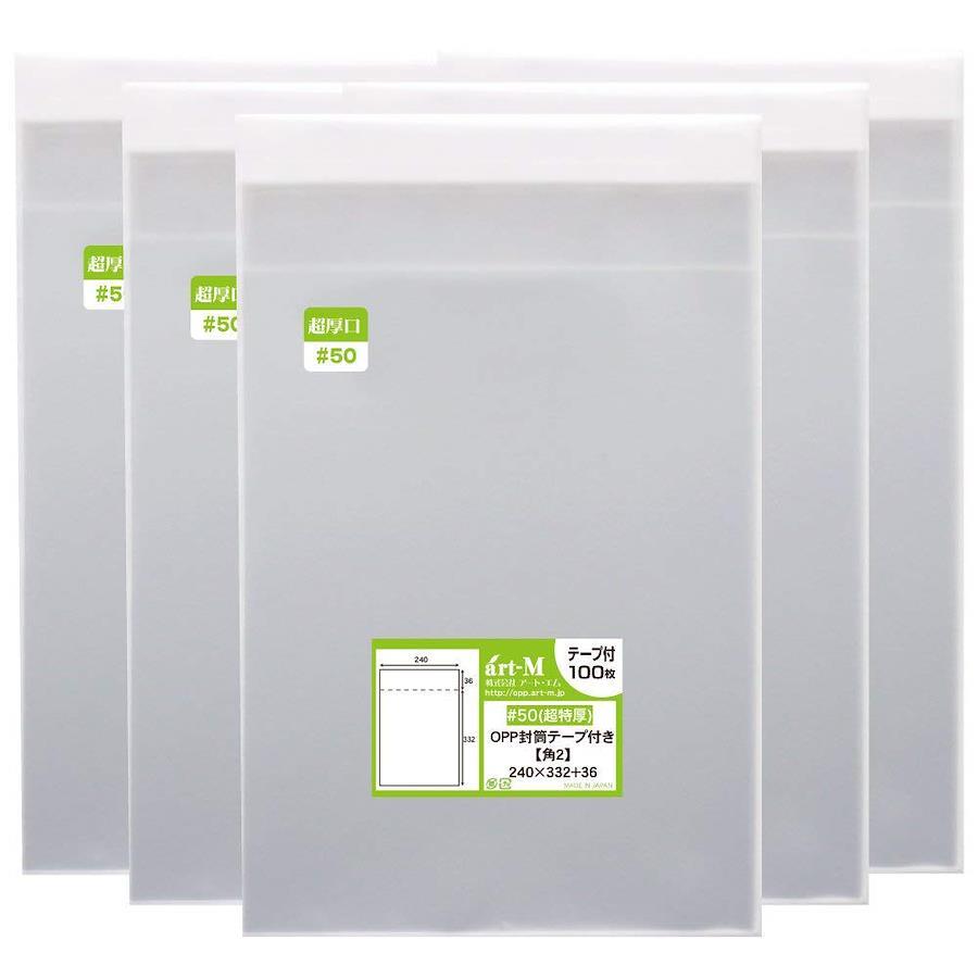 【国産 超厚口#50】テープ付 【500枚】 角2 【 A4サイズちよっと大きめ用 】透明OPP袋(透明封筒)50ミクロン厚(超厚口)
