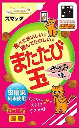 猫が喜ぶ有効成分を多く含むまたたびの実「虫?果(ちゅうえいか)」純末をコーティングした、「ねこちゃん大好きささみ味」のまたたびスナックです。かじったり、転がしたり、身体をこすりつけたり、気持ち良さそうにゴロゴロします。