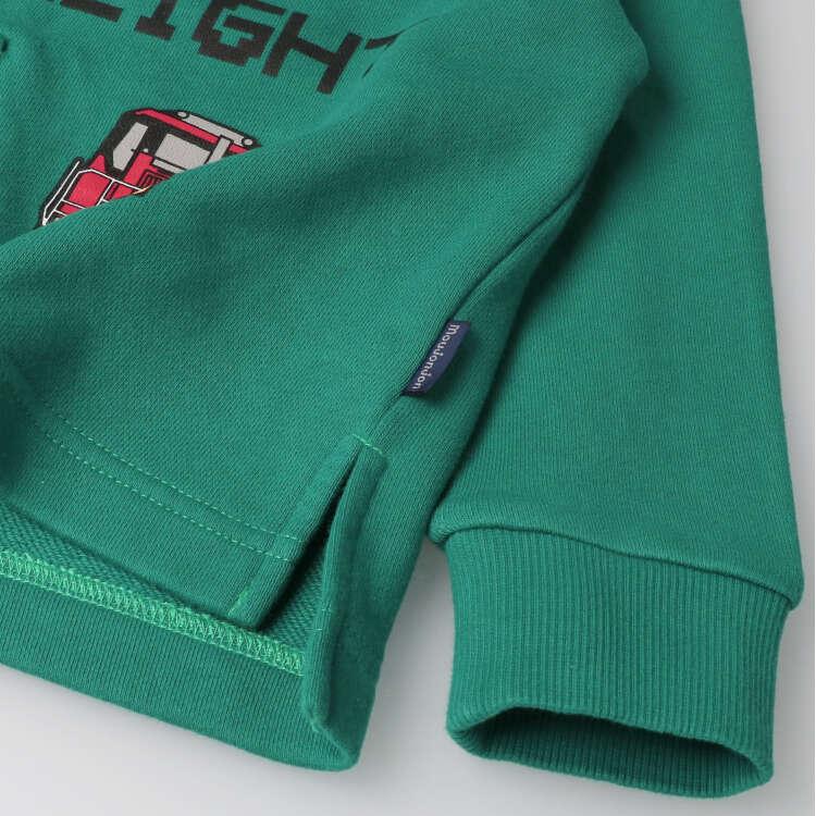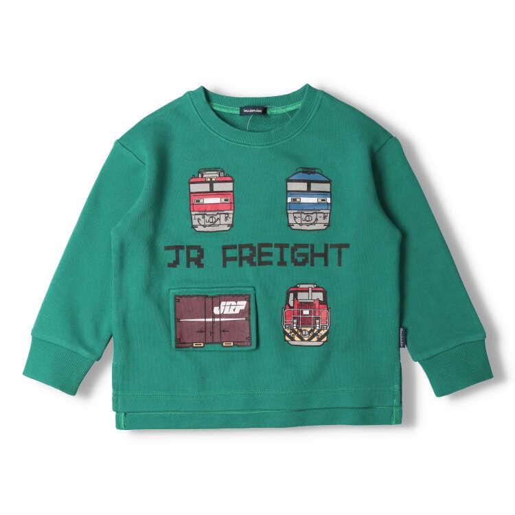 人気のJR貨物列車シリーズ。コンテナのプリント部分がフラップになっていて、めくると車が出てくる仕掛けが楽しいトレーナー、スウェット。裏毛素材で秋から春まで長く着られます。【アイテム】長袖 ロングスリーブ トップス カジュアル お洒落 オシャレ かっこいい かわいい 可愛い 普段着 デイリーウェア お出かけ着 お外遊び着 子ども こども 男児 男の子 ボーイズ キッズ ベビーサイズ トドラーサイズ 幼稚園 保育園 小学校 通園 通学 小学生 2023年秋冬物新作 丸高衣料 鉄道 子鉄 車両 電車 電鉄 トレイン オフホワイト 白色 グリーン 緑色 ムージョンジョン