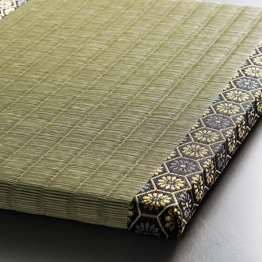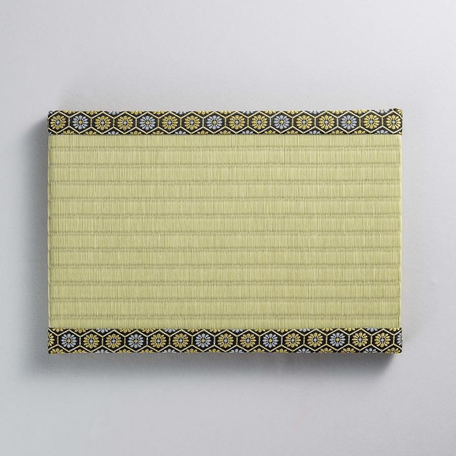 本格的な製法で作られたミニ畳です。碗を載せたり、花器やフィギュアなどの飾り台、スマホや眼鏡置きなどとして、日本の伝統文化を日常的に感じていただける商品です。畳縁を日本の伝統柄でシリーズ化しました。この商品の畳縁≪亀甲に菊≫は、亀甲文様は亀の甲羅を模した文様で「長寿・繁栄」の意味と菊が持つ「高貴・厄除け」の象徴が組み合わさることで、より縁起の良い柄として、祝いの席などに伝統的に用いられてきました。(サイズ)約210㎜×305㎜×15㎜