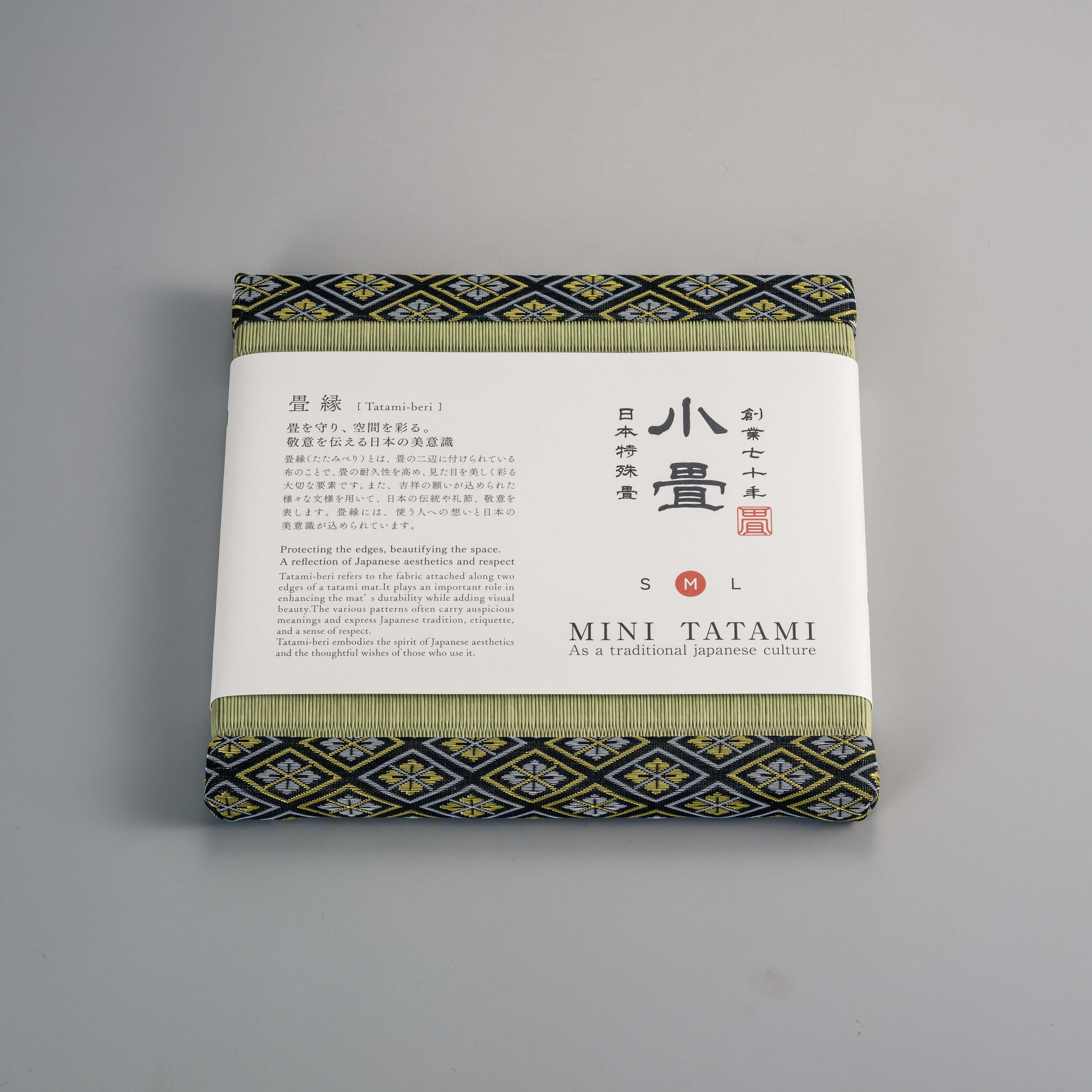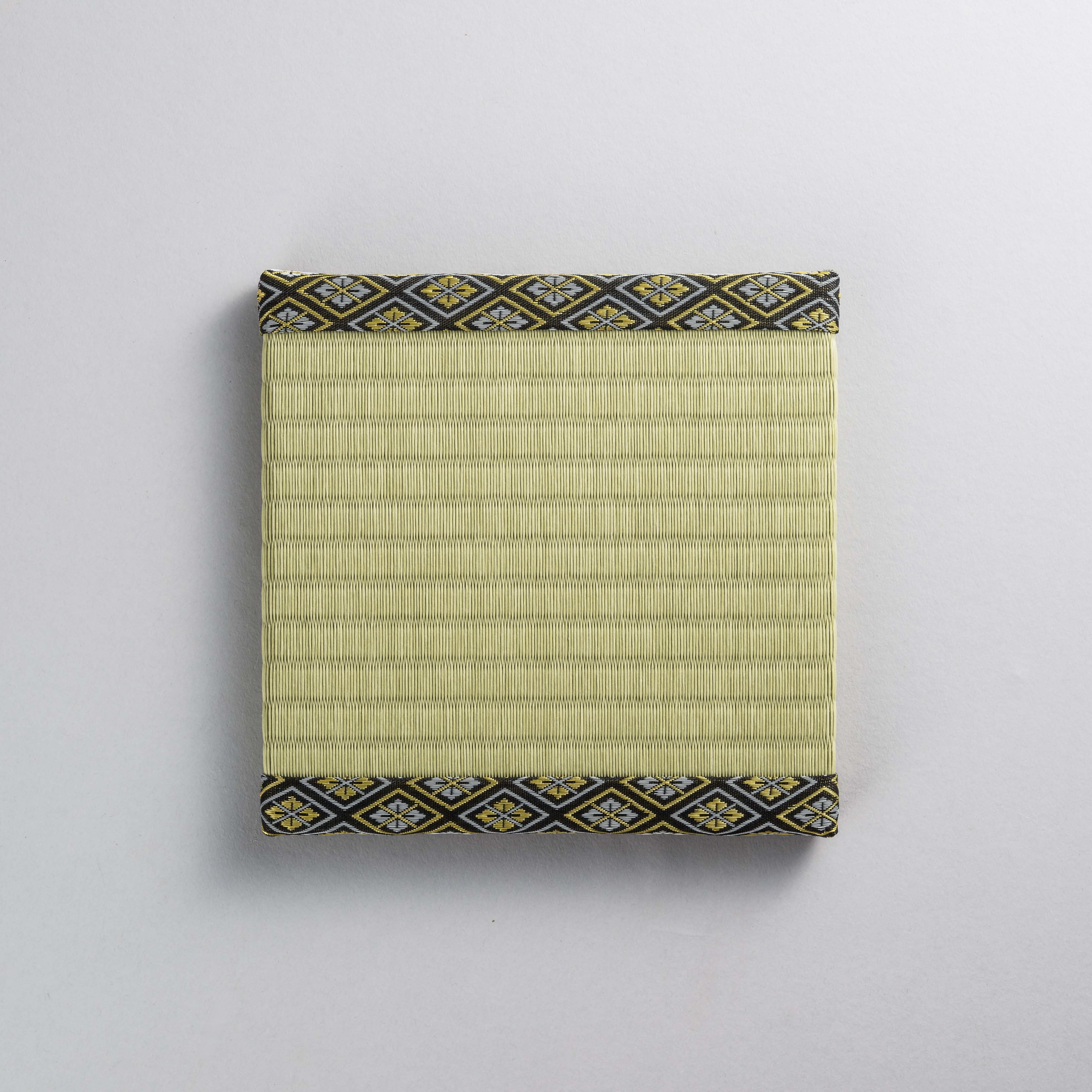 本格的な製法で作られたミニ畳です。碗を載せたり、花器やフィギュアなどの飾り台、スマホや眼鏡置きなどとして、日本の伝統文化を日常的に感じていただける商品です。畳縁を日本の伝統柄でシリーズ化しました。この商品の畳縁≪四ツ目花菱≫は、平安貴族が好んだ「四ツ目結」に、4枚の花びらを菱形に配した文様です。高貴さや上品さを表し。「長寿」や「子孫繁栄」といった意味合いを持つ縁起の良い文様です。(サイズ)約200㎜×200㎜×15㎜