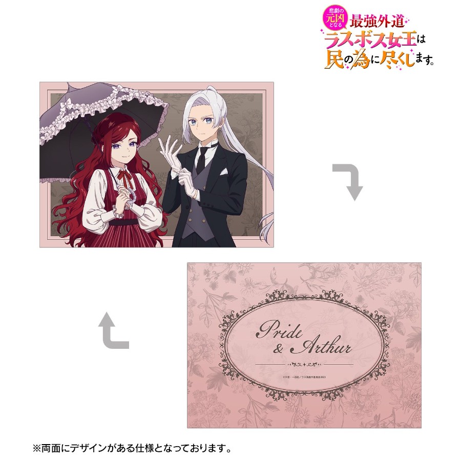 TVアニメ『悲劇の元凶となる最強外道ラスボス女王は民の為に尽くします。』より、A5イラストカードの登場です。 プライド、アーサーの描き下ろしイラストをA5サイズのイラストカードに仕上げました。 お部屋やデスクまわりなどに飾って、キャラクターとの日常をお楽しみください。